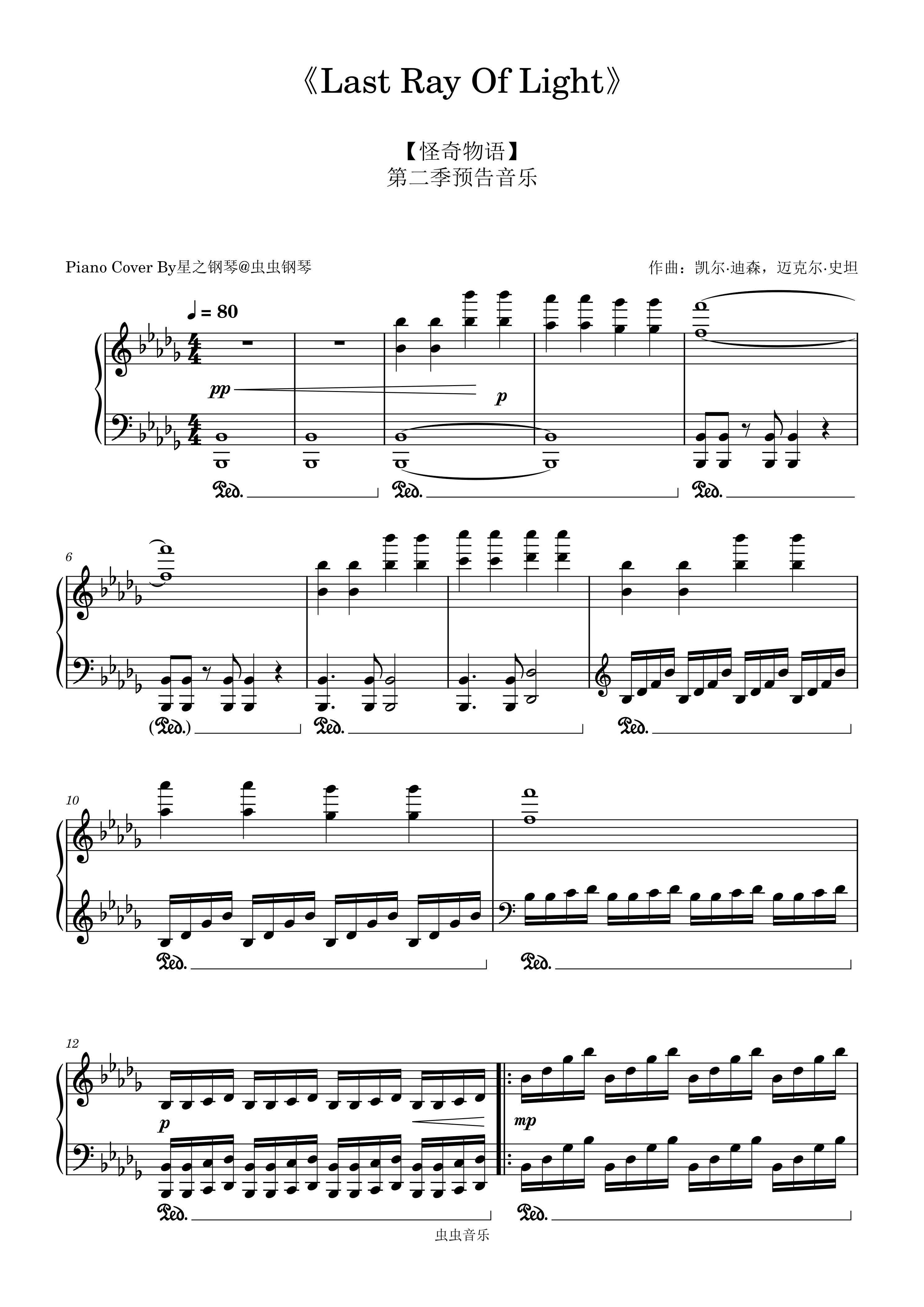 钢琴谱:【怪奇物语】第二季预告曲《Last Ray Of Light》钢琴独奏版~星之钢琴~