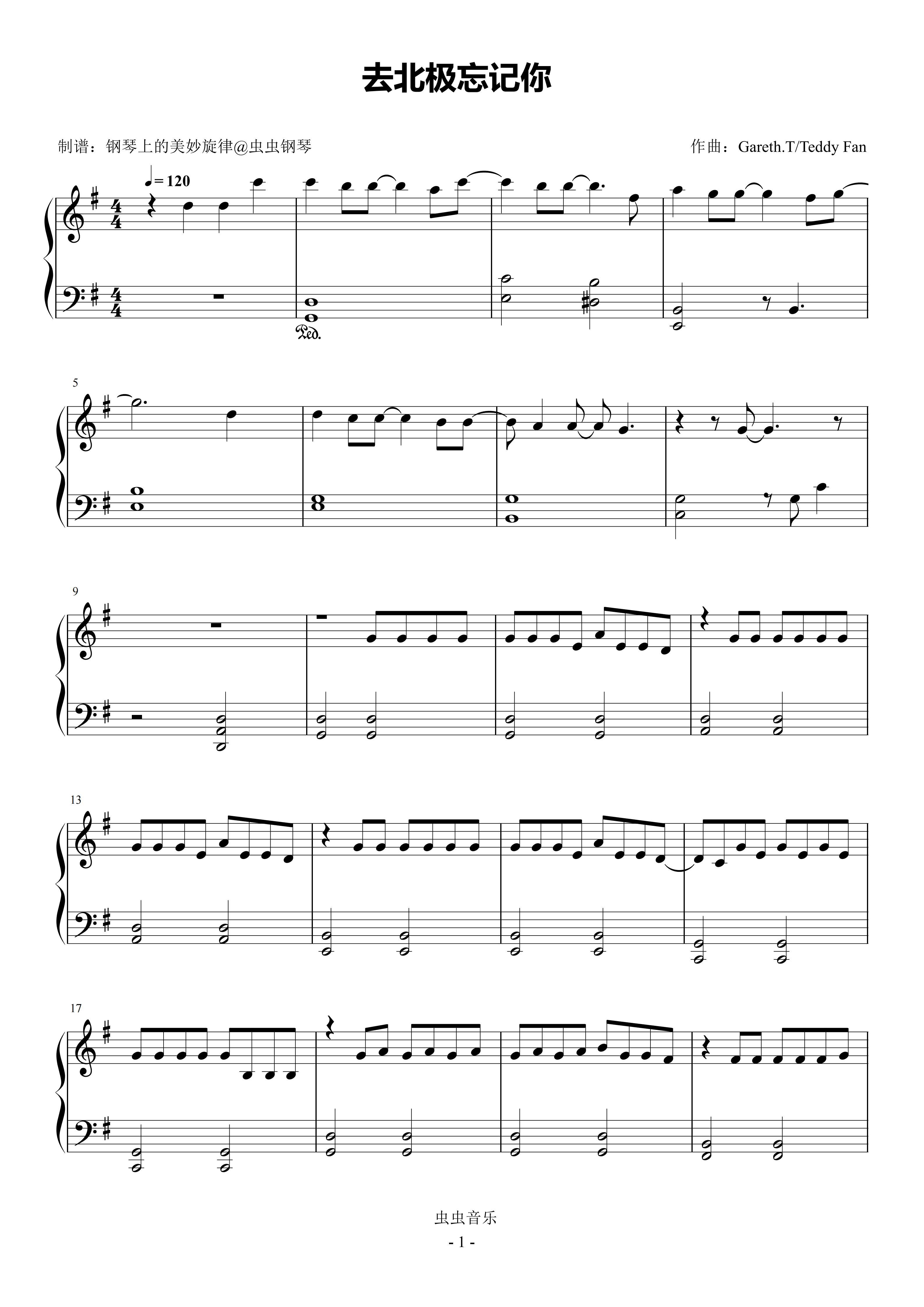 钢琴谱:去北极忘记你 原调简易版 林宥嘉 / 汪苏泷