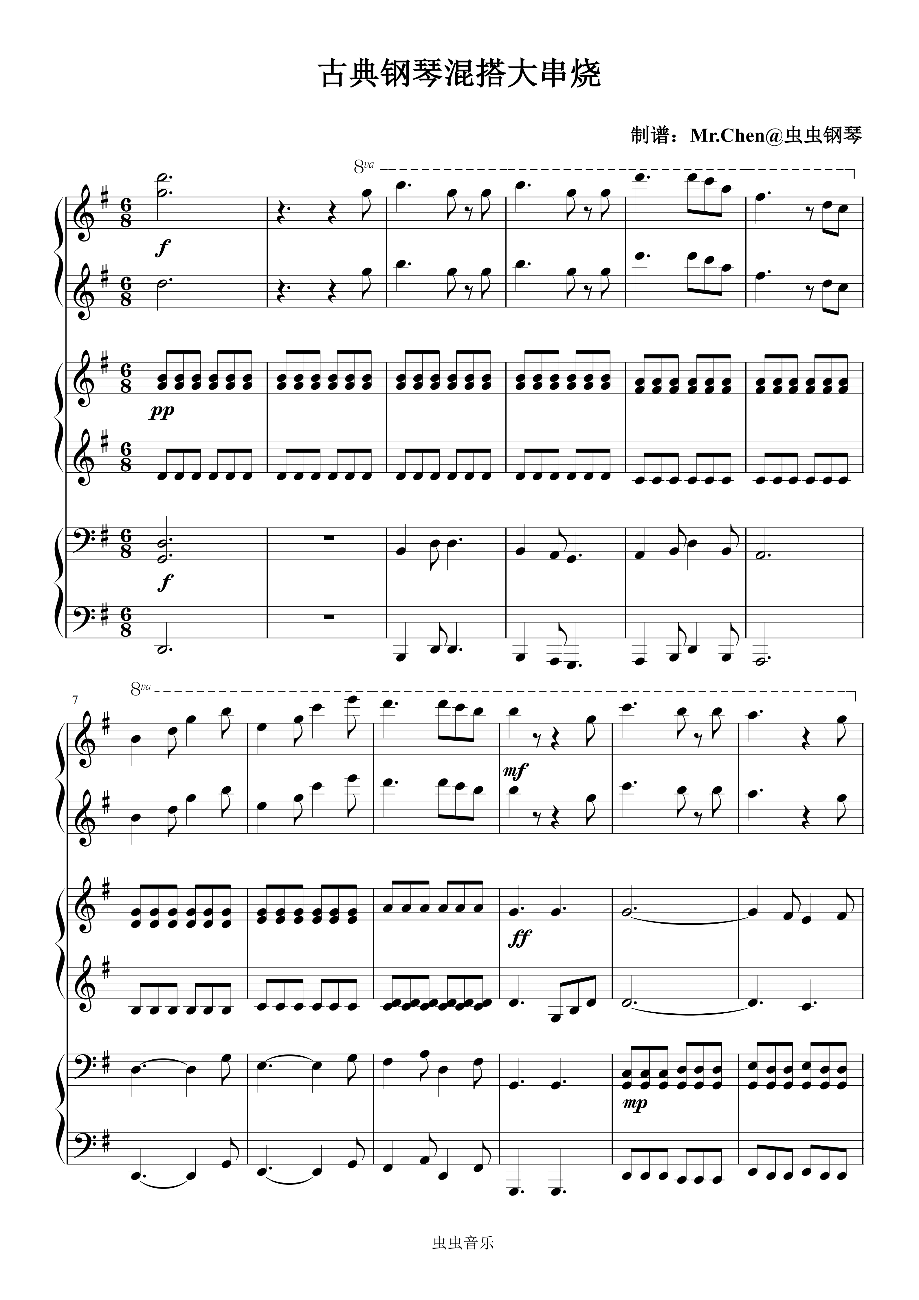 钢琴谱:古典钢琴混搭大串烧 (六手联弹)- 70首经典作品,你能听出几首~