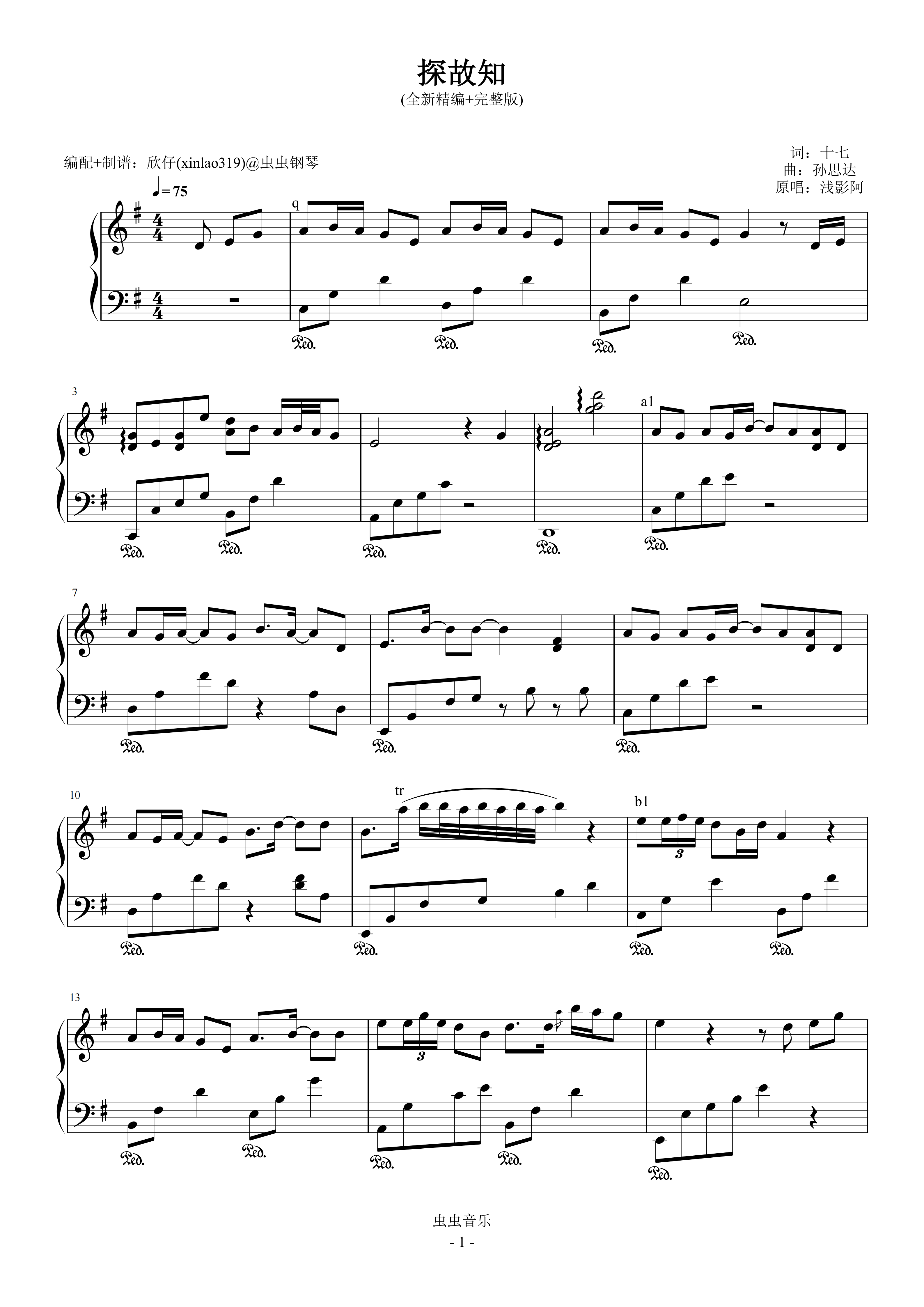 钢琴谱:探故知(e、浅影阿、全新精编+完整版)