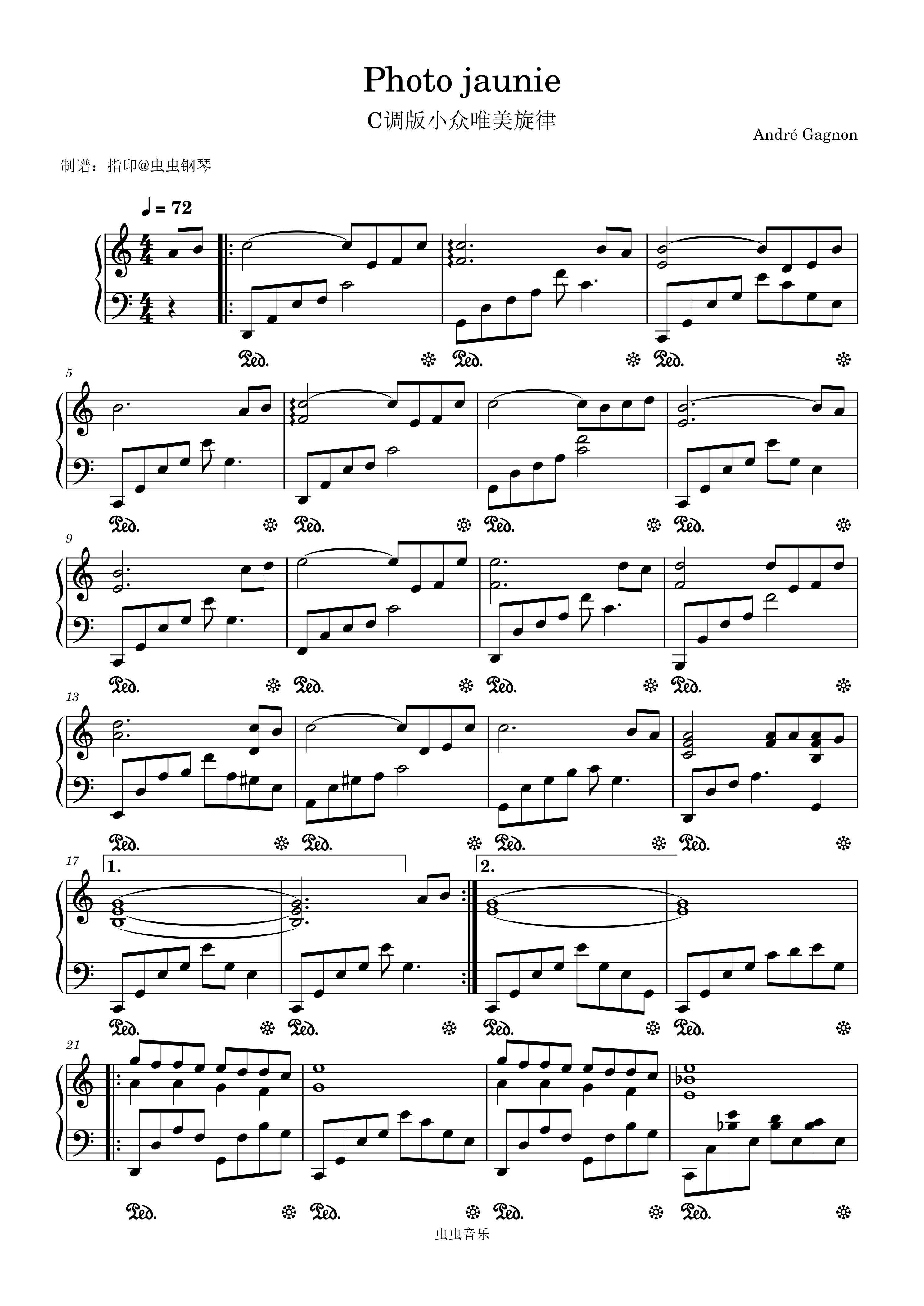 钢琴谱:C调版小众唯美旋律《Photo jaunie 》