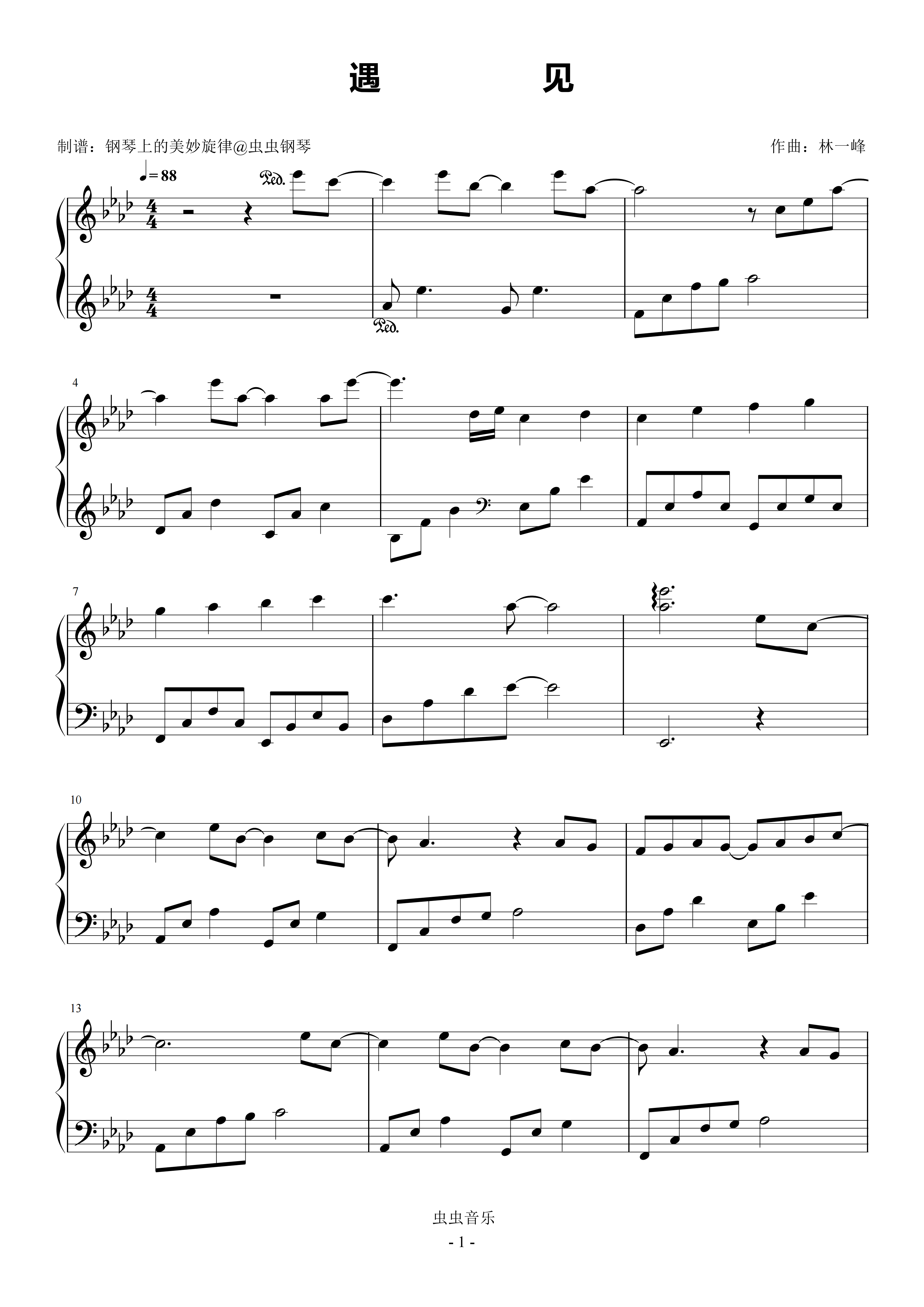 钢琴谱:遇见 原调简易版 流行经典 孙燕姿