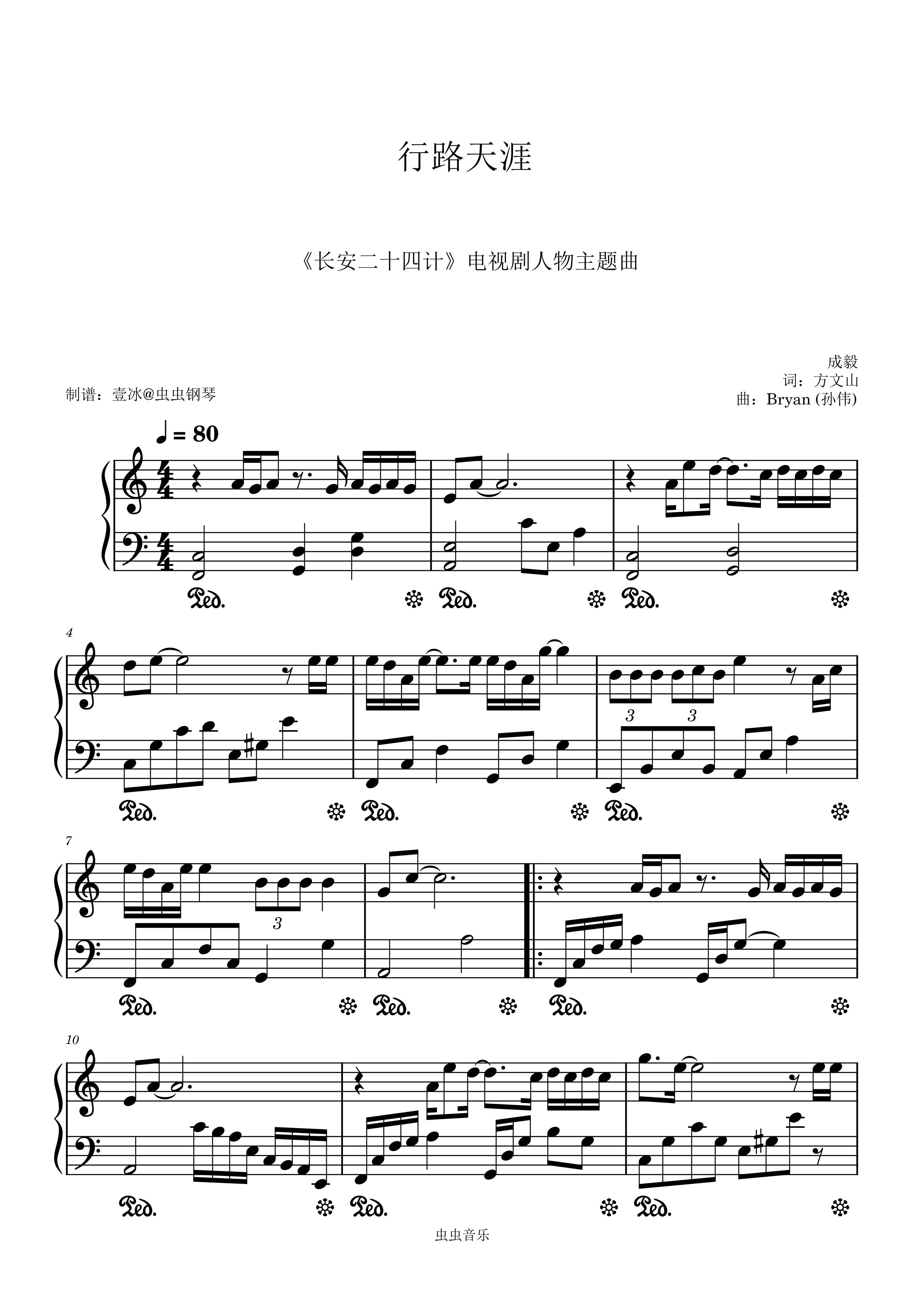 钢琴谱:行路天涯 (《长安二十四计》电视剧人物主题曲) - C调