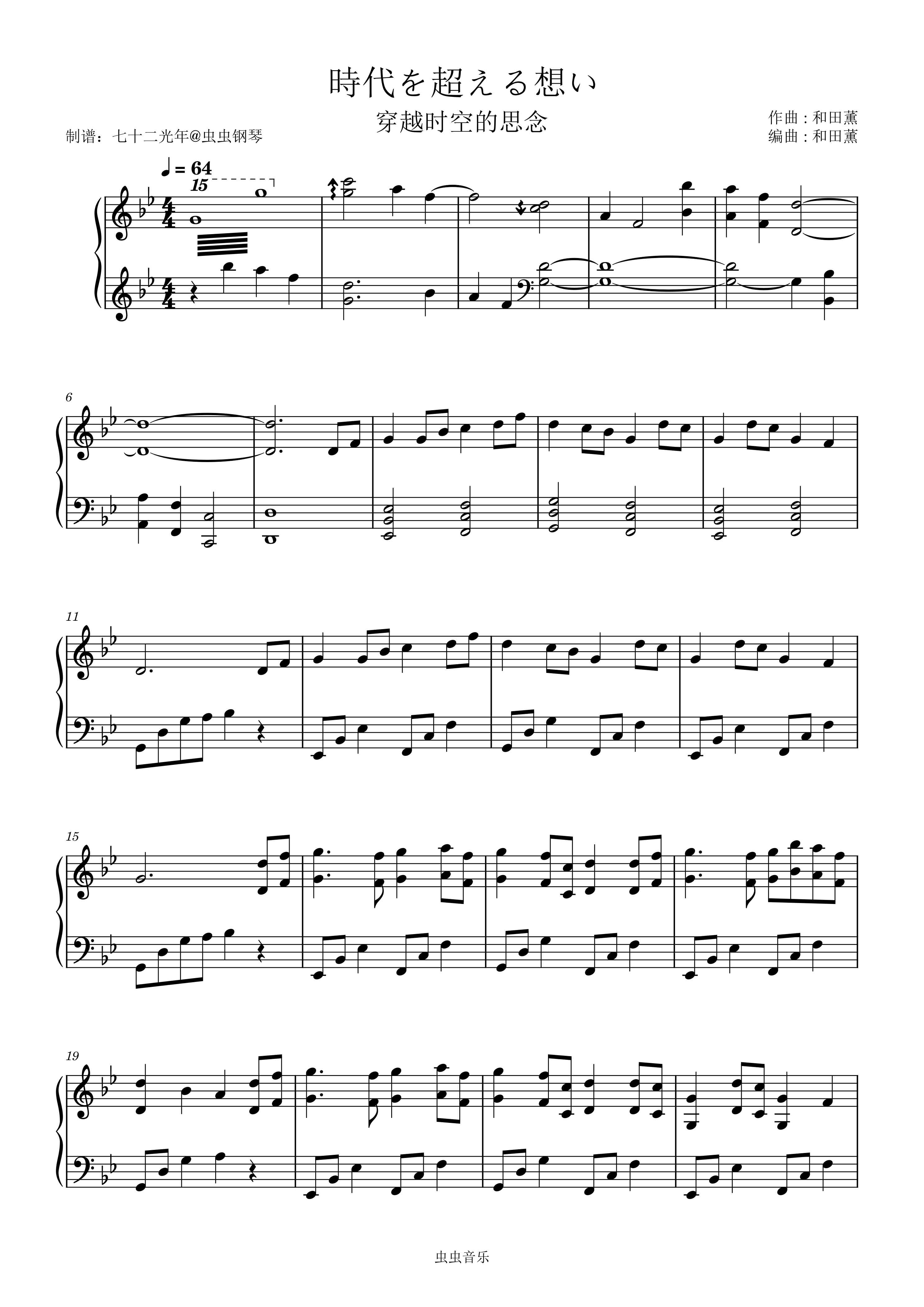• 時代を越える想い钢琴简谱 Bb调 数字双手