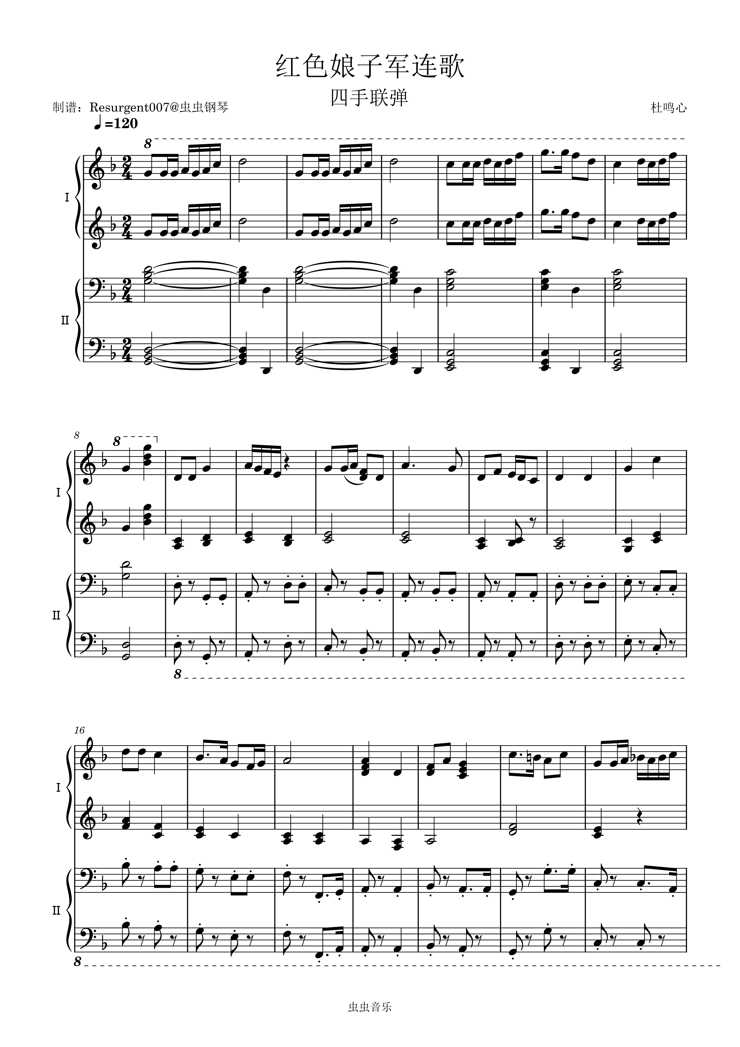 钢琴谱:红色娘子军连歌(四手联弹)好听易上手