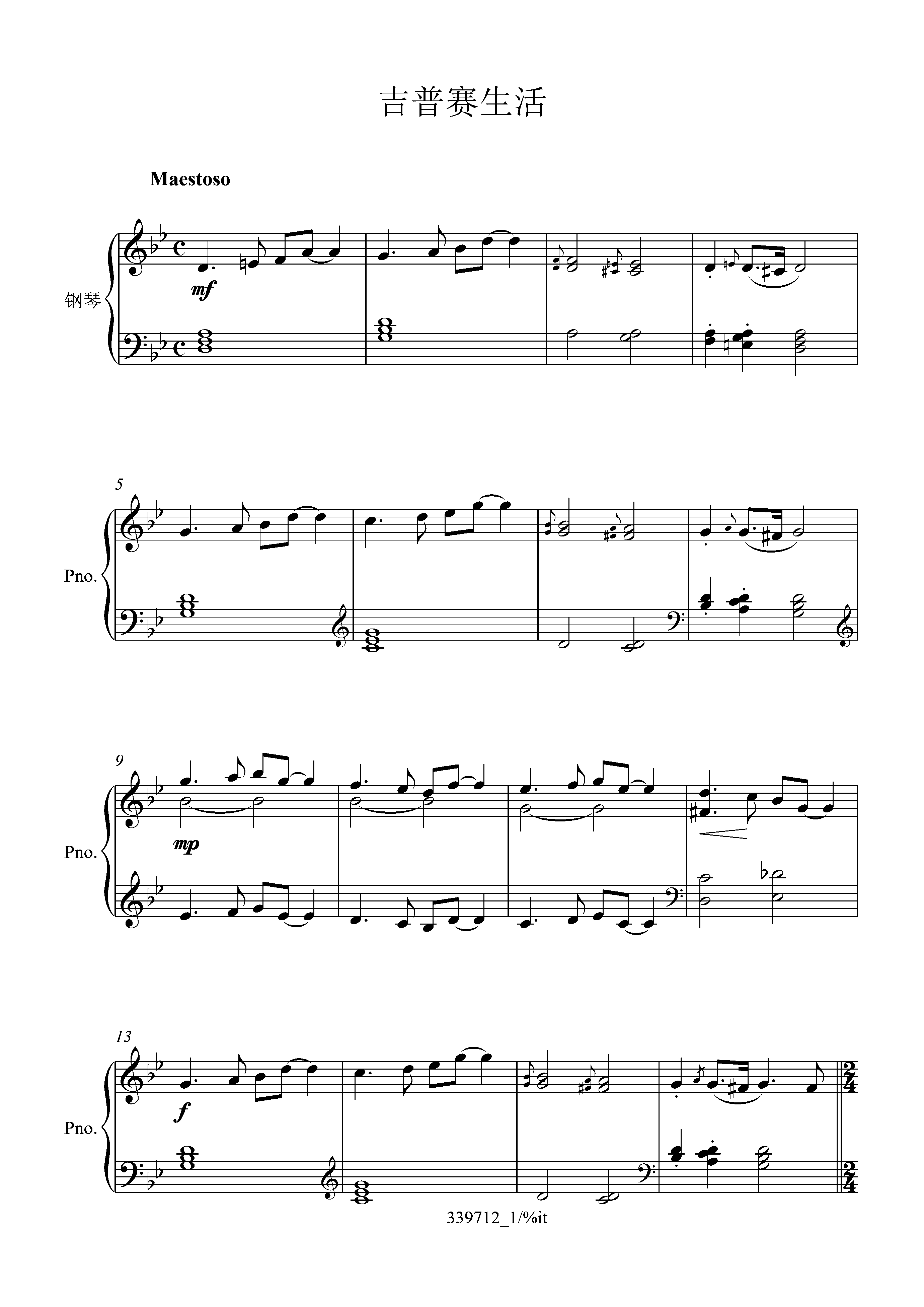 吉普赛生活钢琴简谱 数字双手