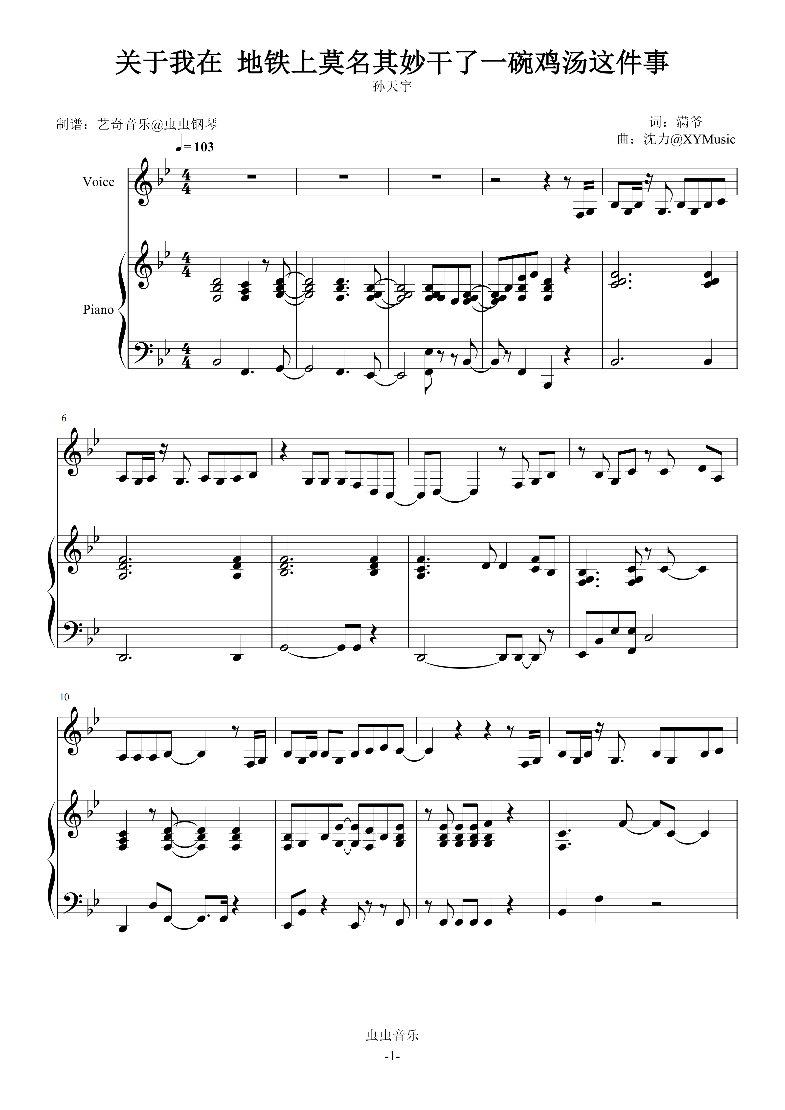 钢琴谱:关于我在地铁上莫名其妙干了碗鸡汤这件事