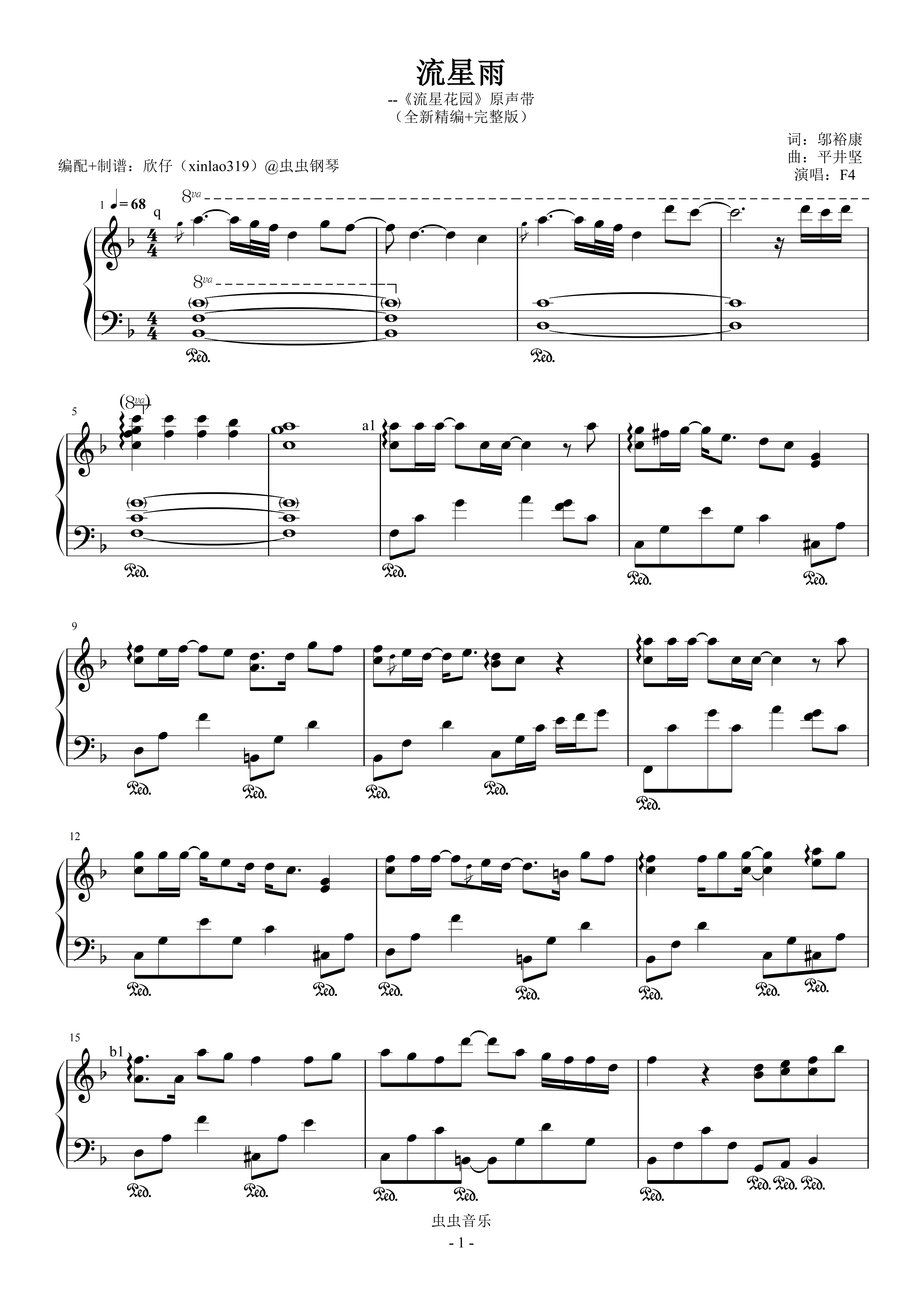 钢琴谱:流星雨(F调、F4、《流星花园》主题曲、完整版)
