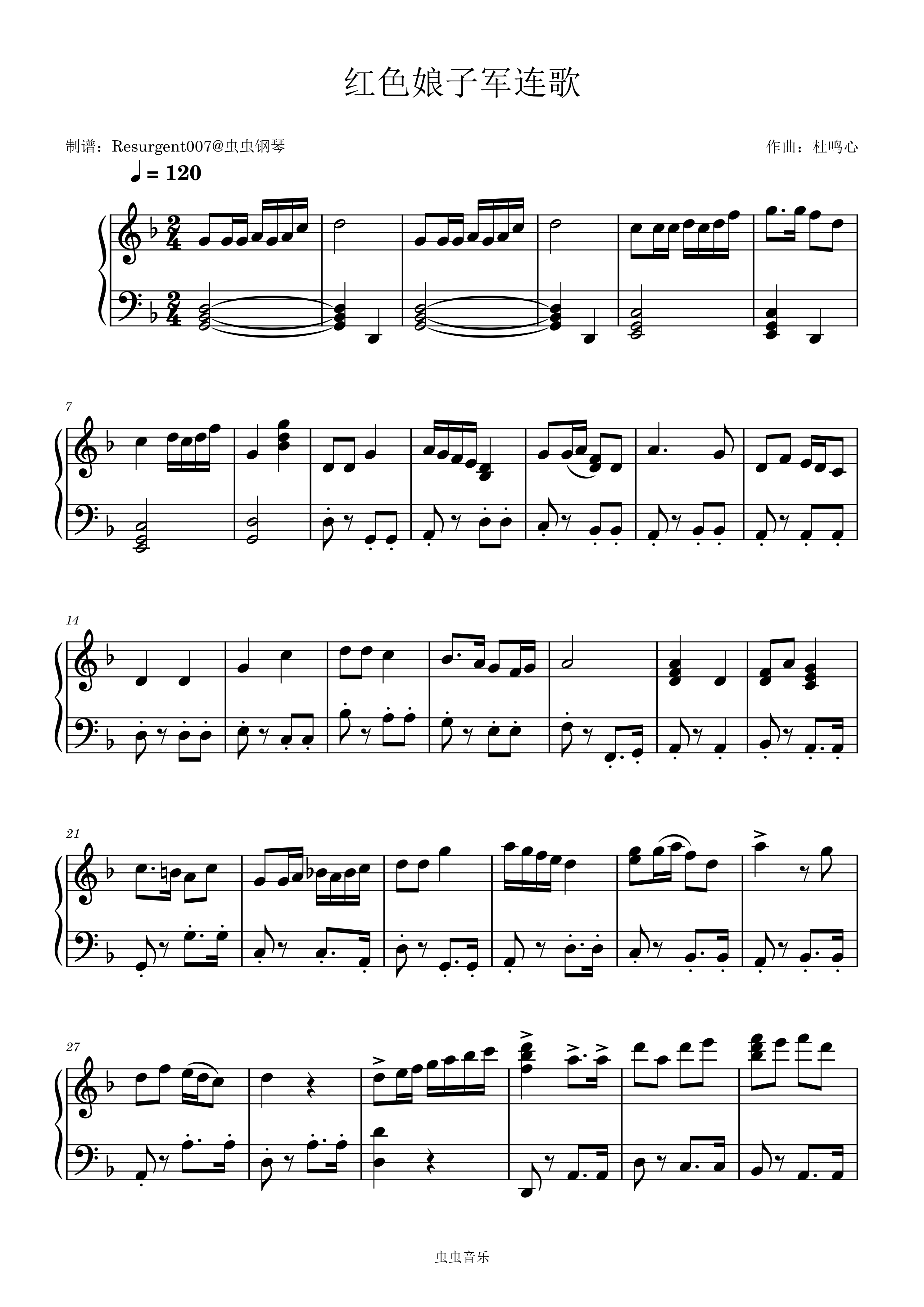 • 红色娘子军军号《但昭义钢琴作品选集》钢琴简谱 - 数字双手