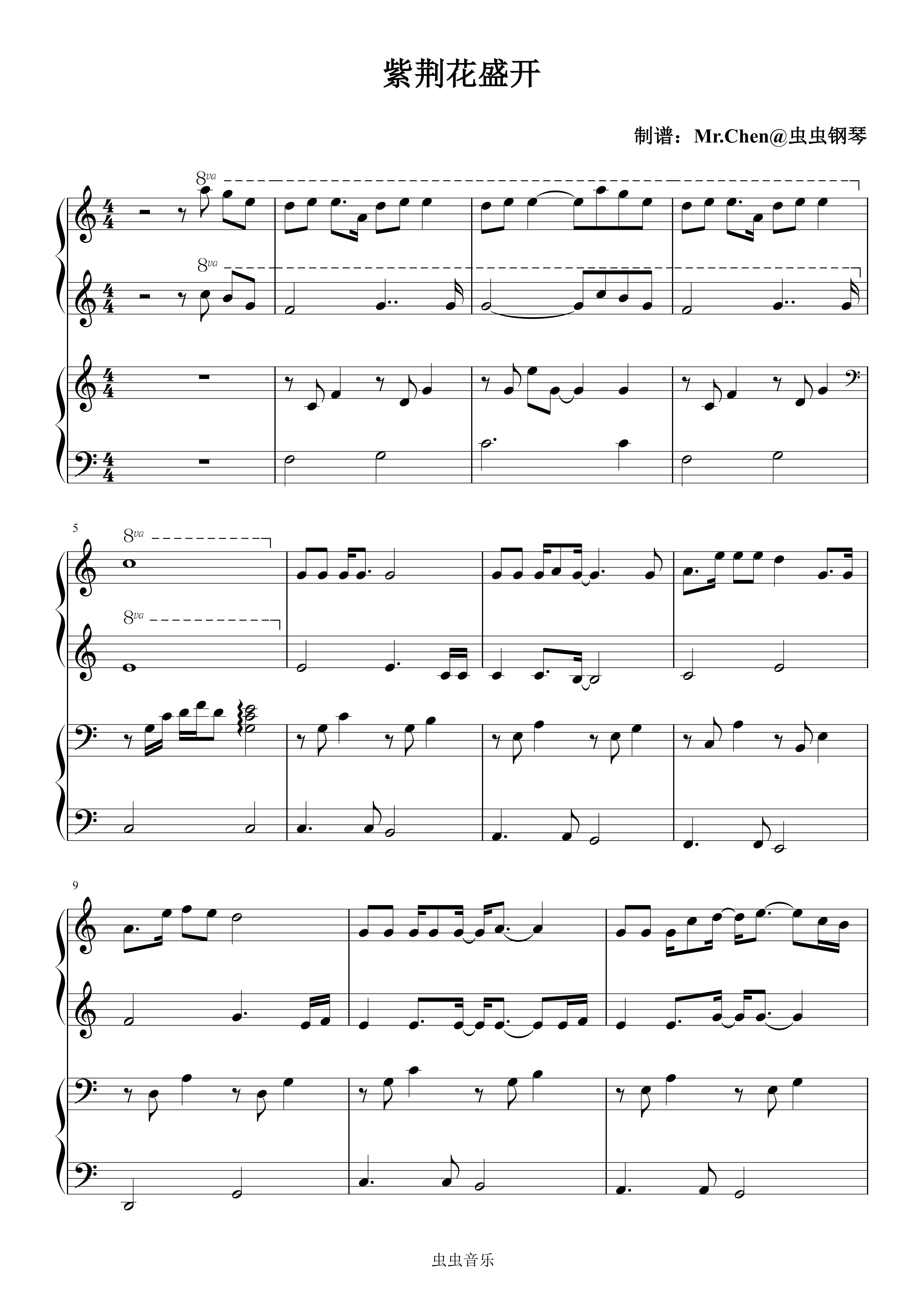 • 紫荆花盛开钢琴简谱 C调 数字双手