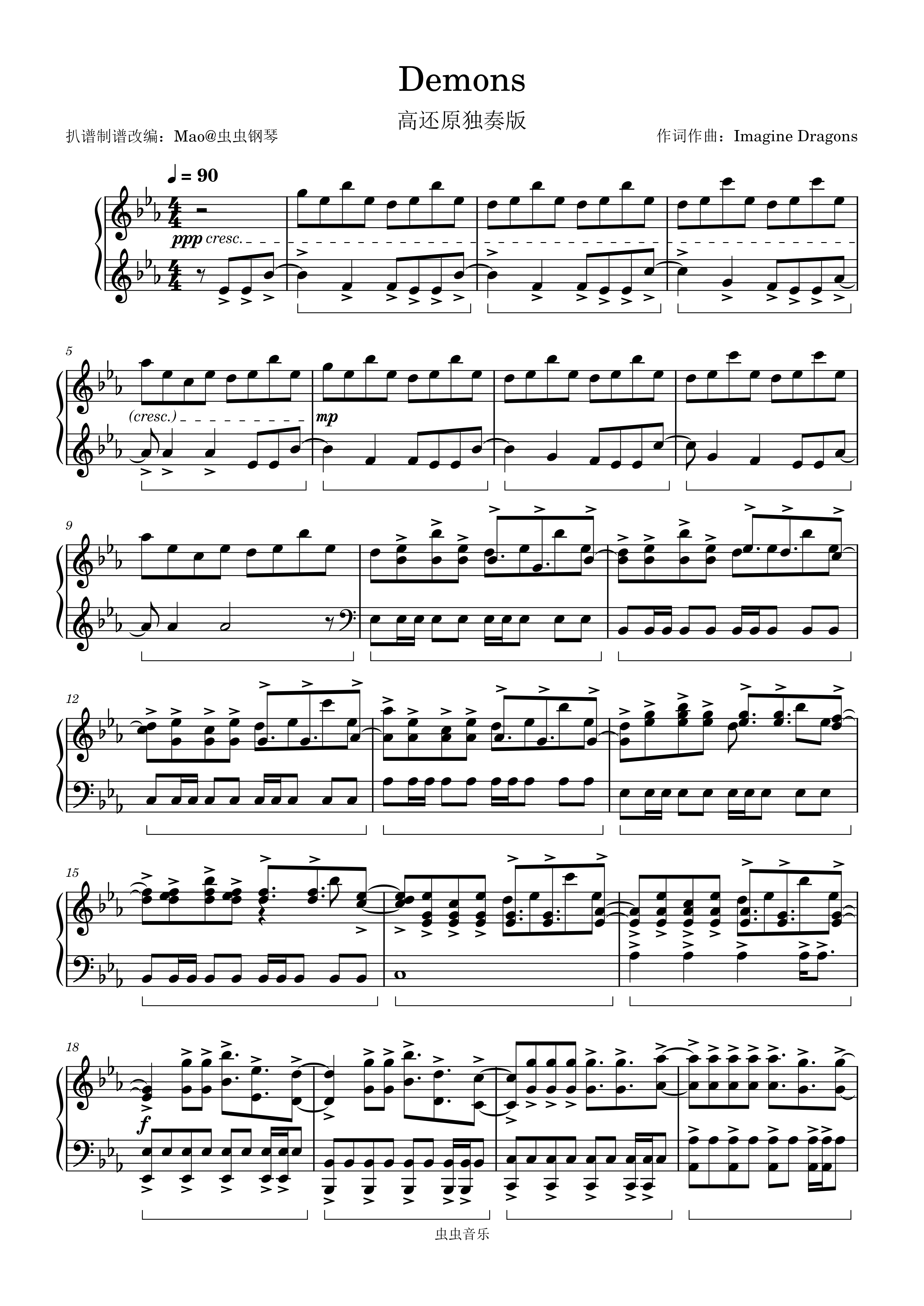 • Demons钢琴简谱 Eb调 数字双手 Josh Mosser/A. Grant/Dan Reynolds/Wayne Sermon/Ben McKee