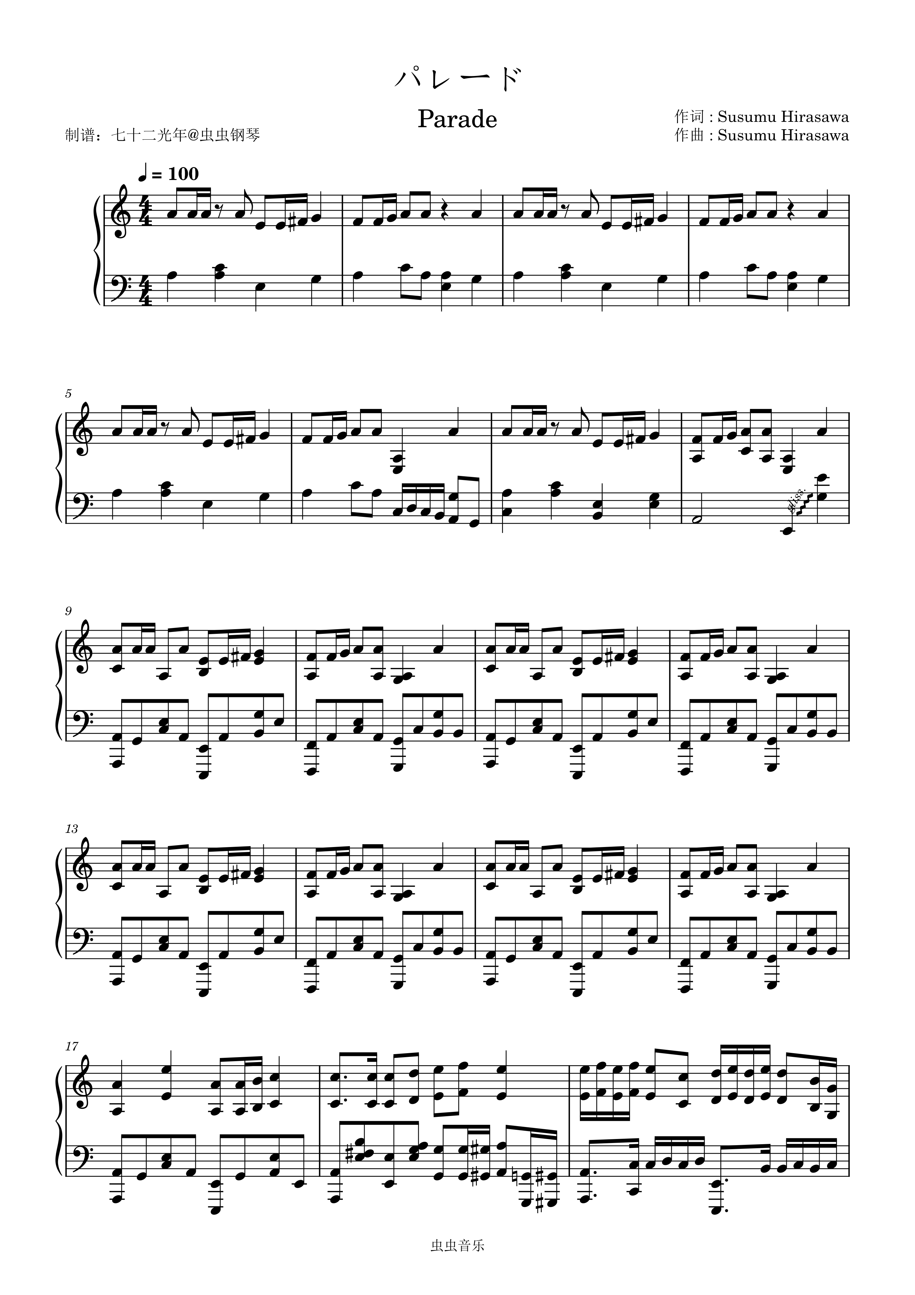 パレード钢琴简谱 数字双手 Susumu Hirasawa