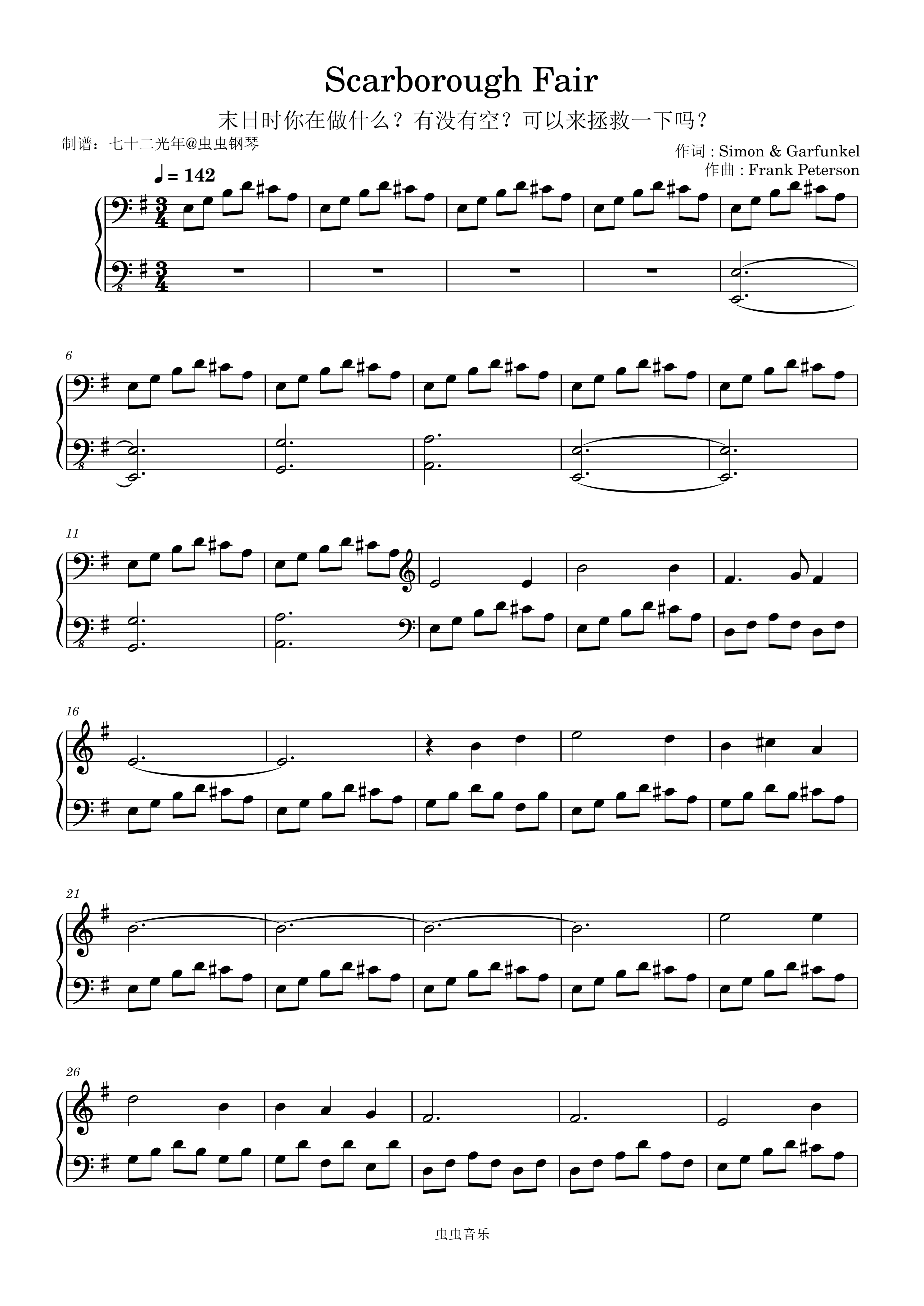 钢琴谱:Scarborough Fair 末日时你在做什么?有没有空?可以来拯救一下吗?