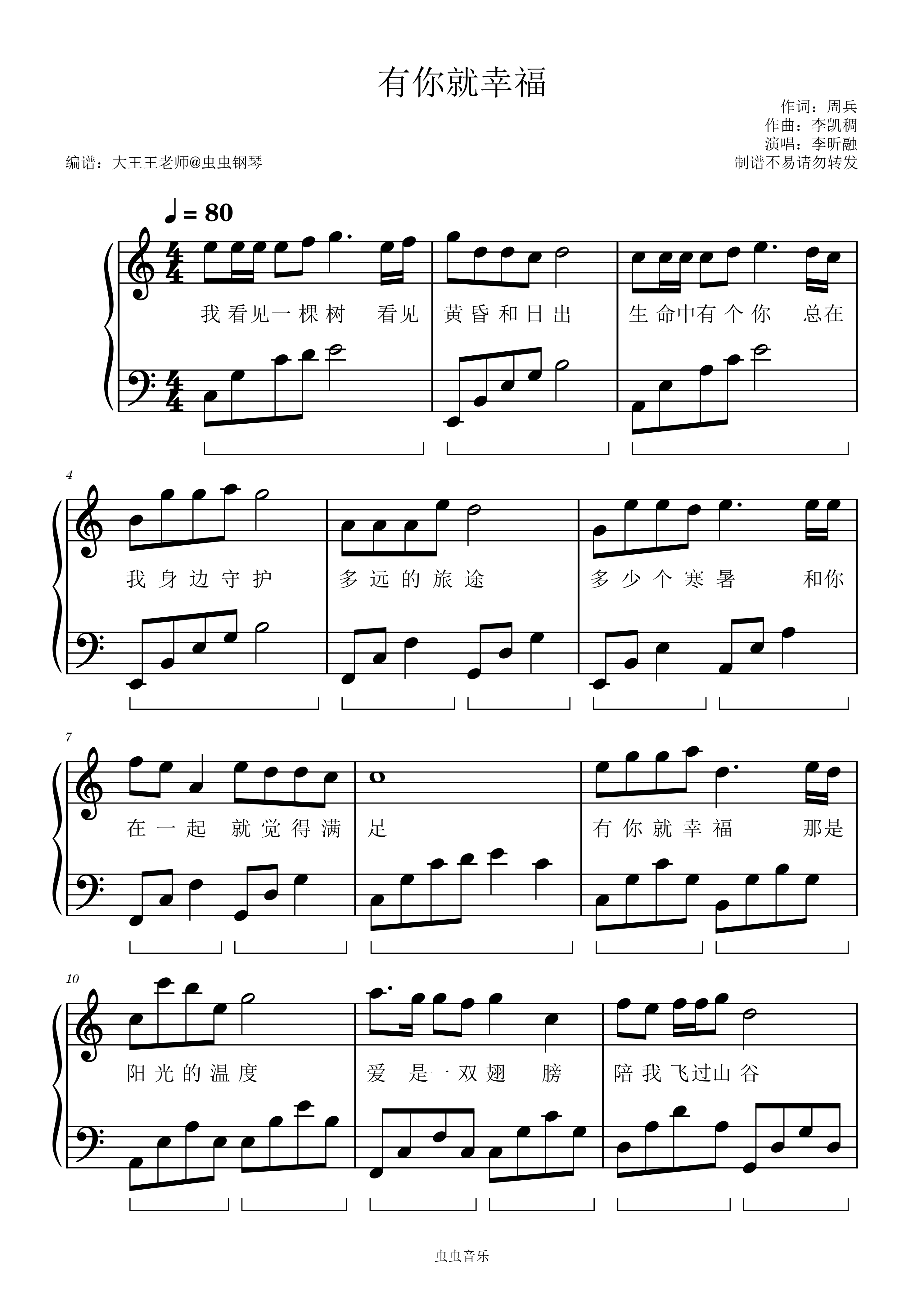 钢琴谱:有你就幸福(带歌词简单版李昕融)