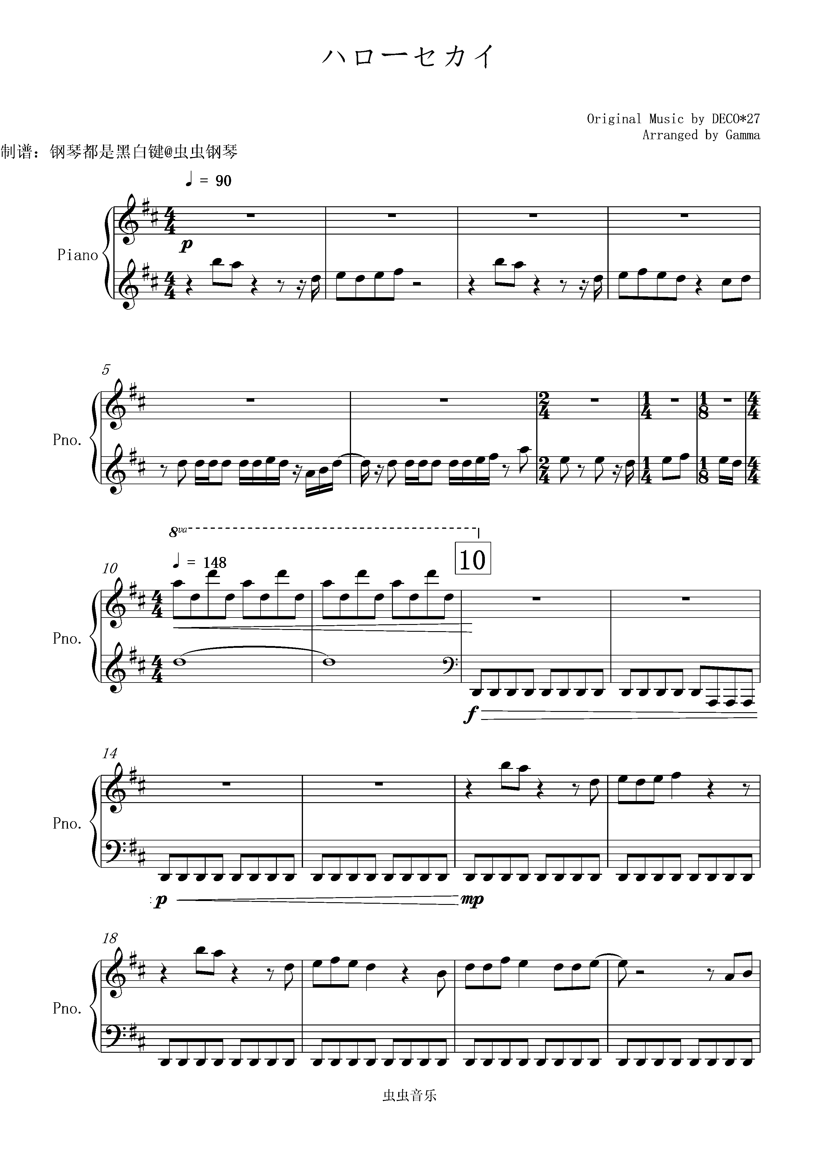 钢琴谱:[初音ミク / DECO*27]你好世界 /ハローセカイ
