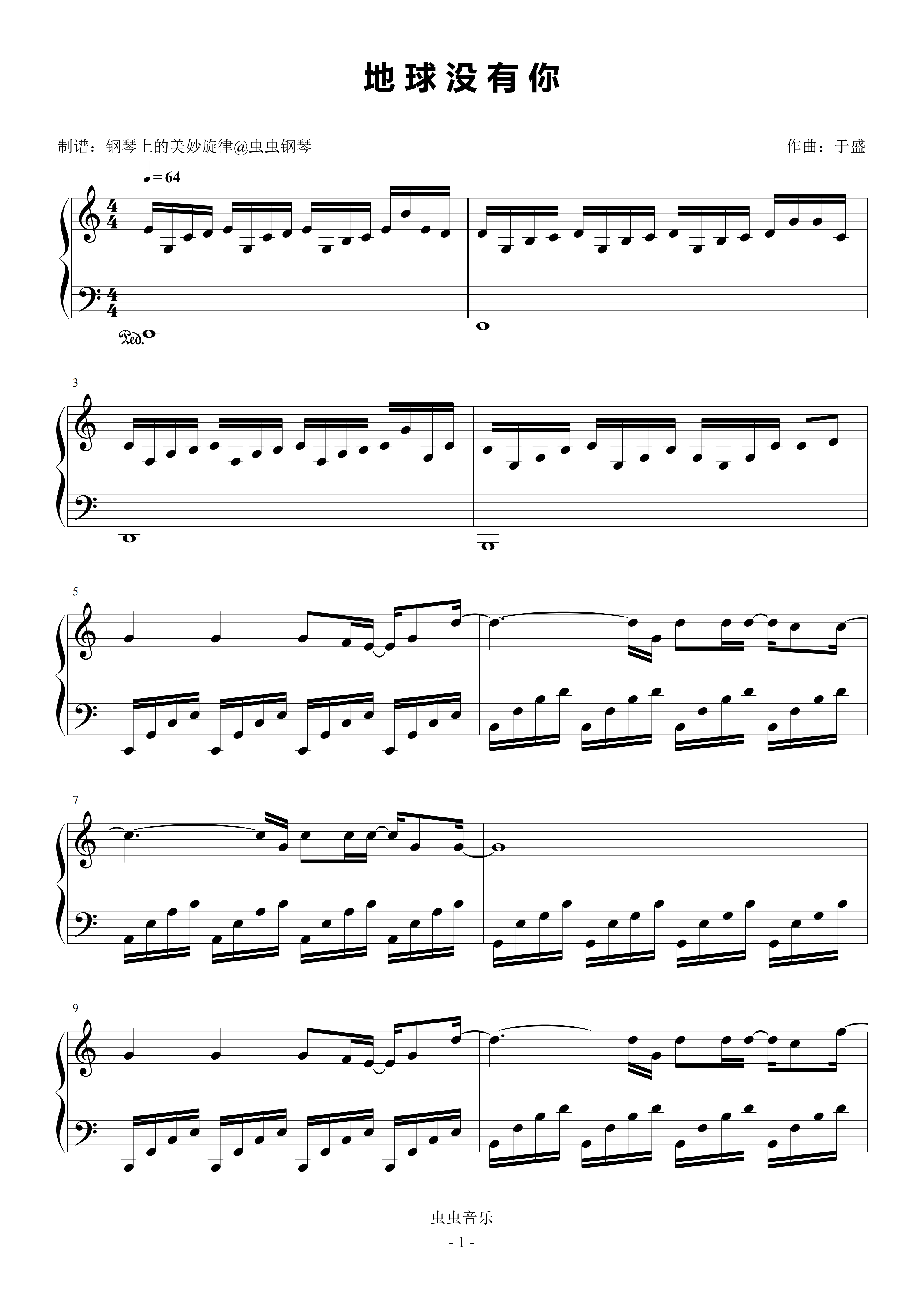 地球没有你钢琴简谱 数字双手