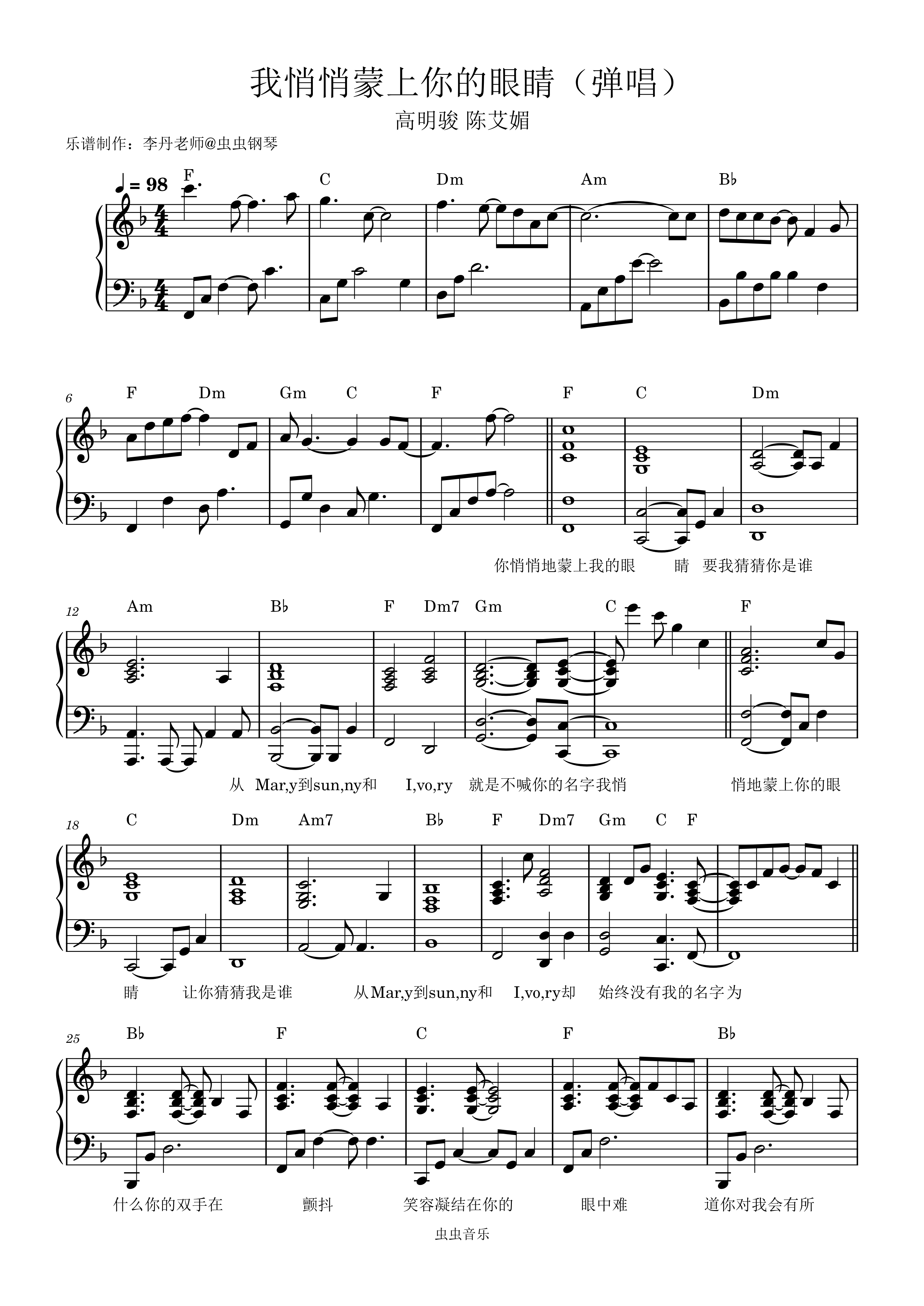 钢琴谱:我悄悄蒙上你的眼睛(弹唱)