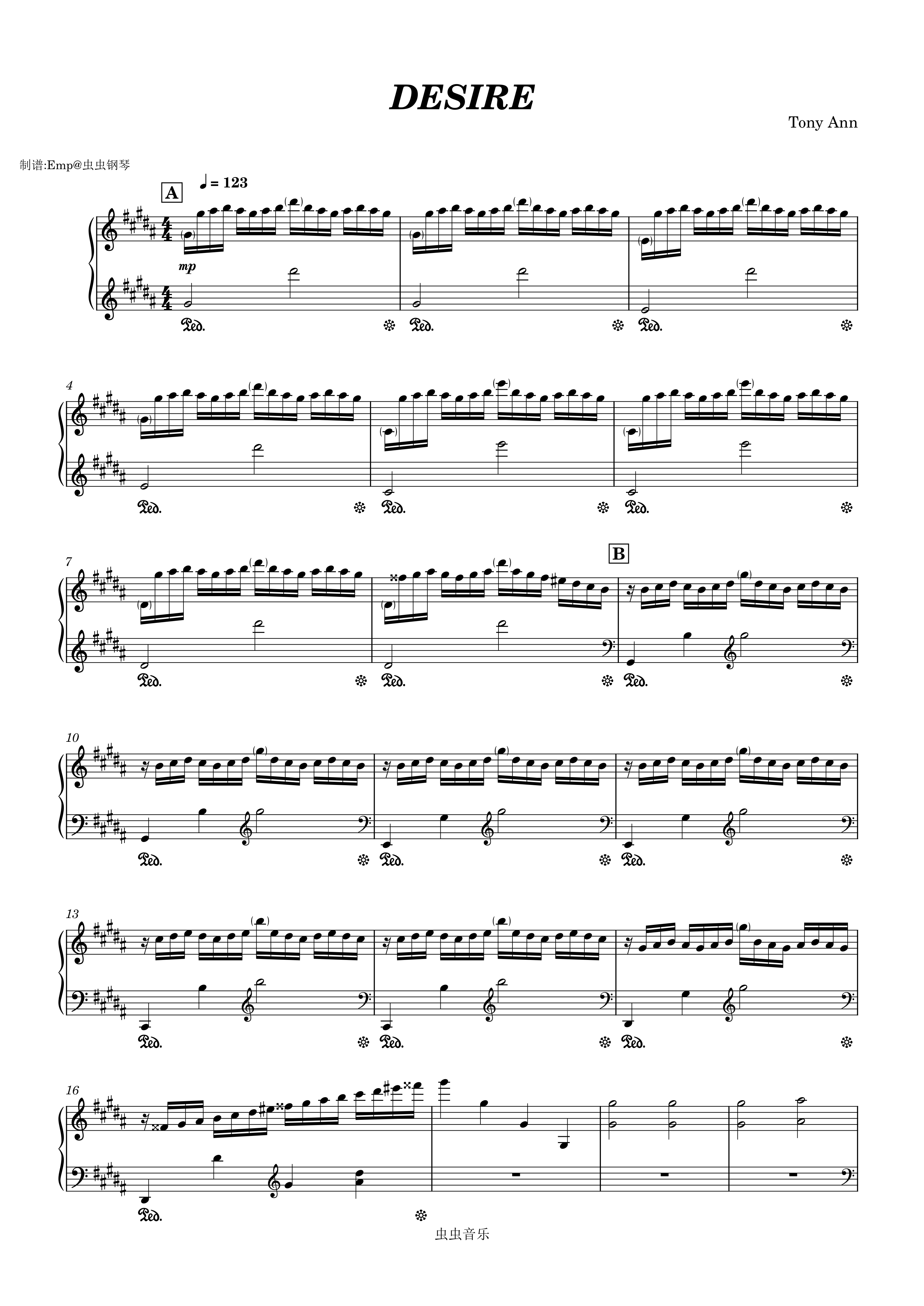 钢琴谱:【纯音乐】DESIRE - Tony Ann 钢琴扒谱分享