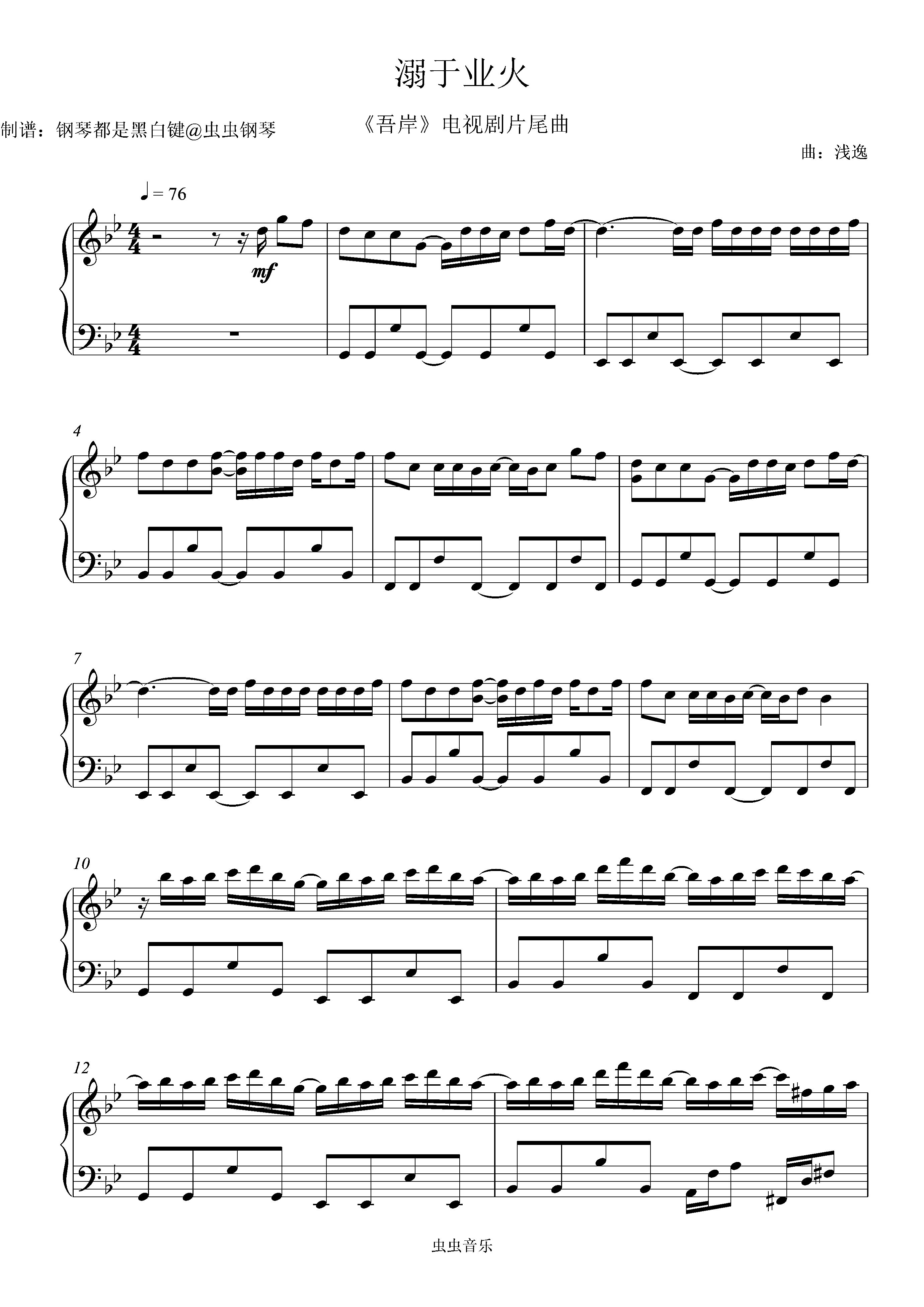 钢琴谱:《吾岸》电视剧片尾曲 - 溺于业火(钢琴演奏版)
