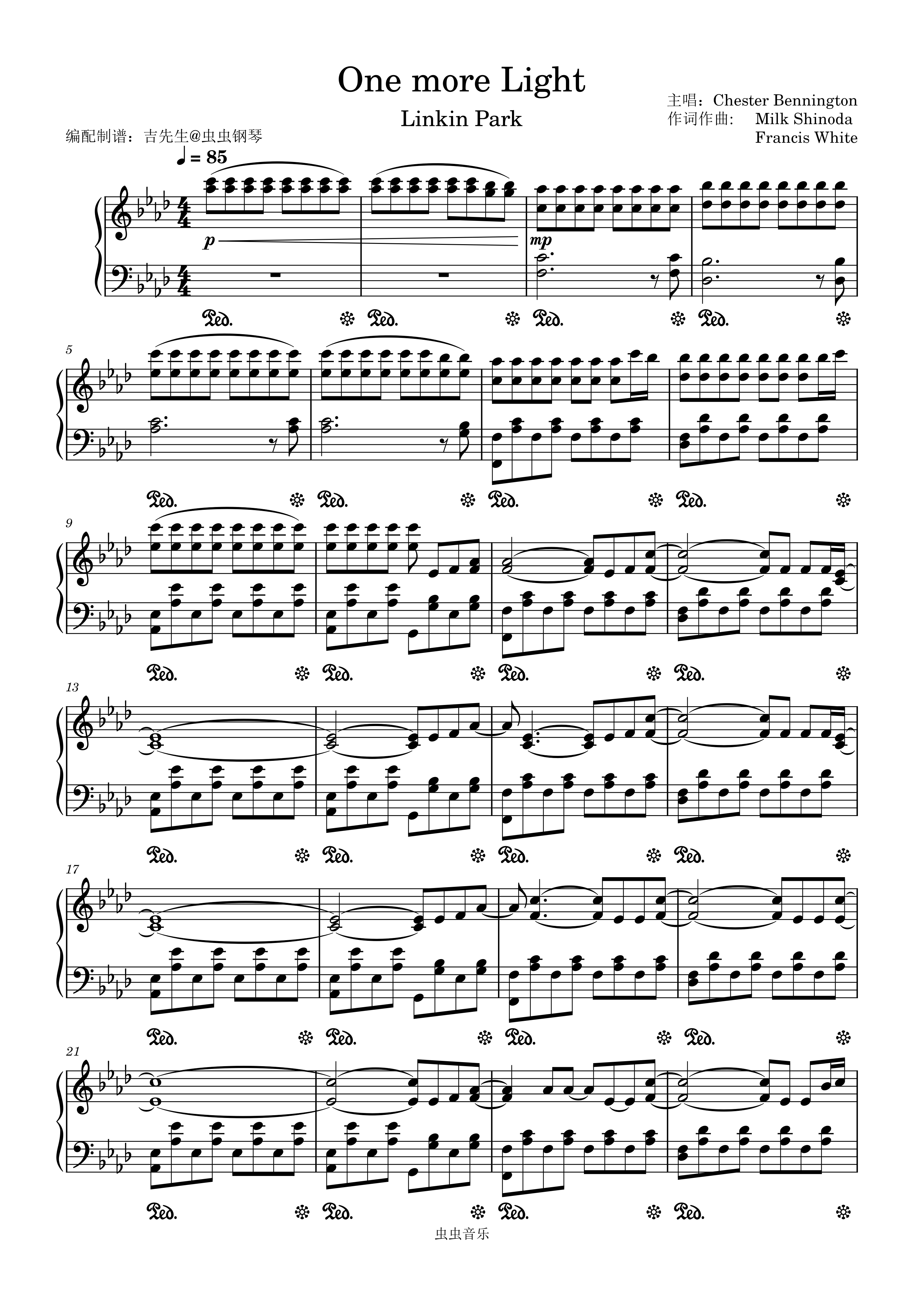钢琴谱:One More Light(又一道光芒)-Linken Park(林肯公园) 钢琴弹奏版