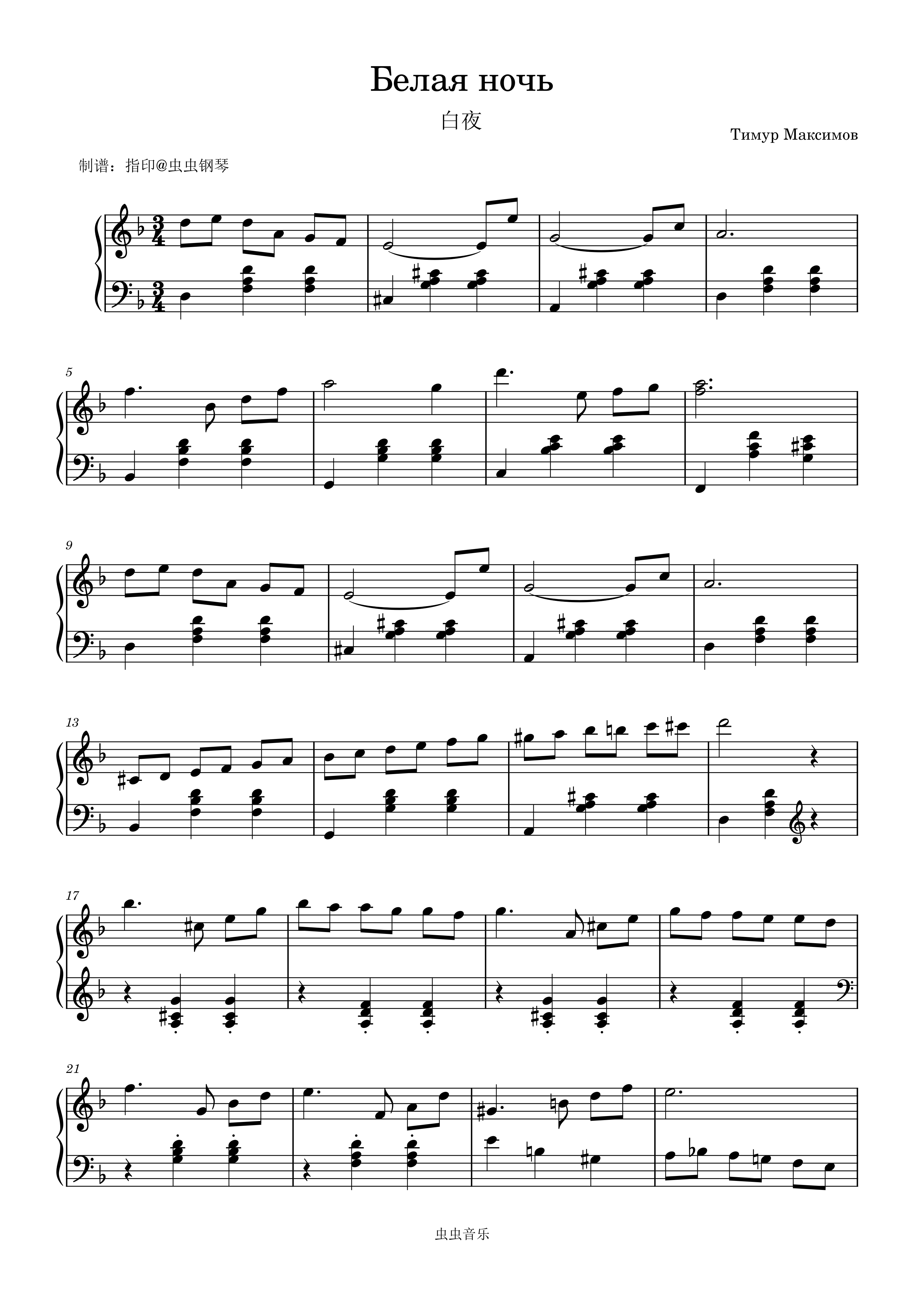 Белая ночь钢琴简谱 数字双手