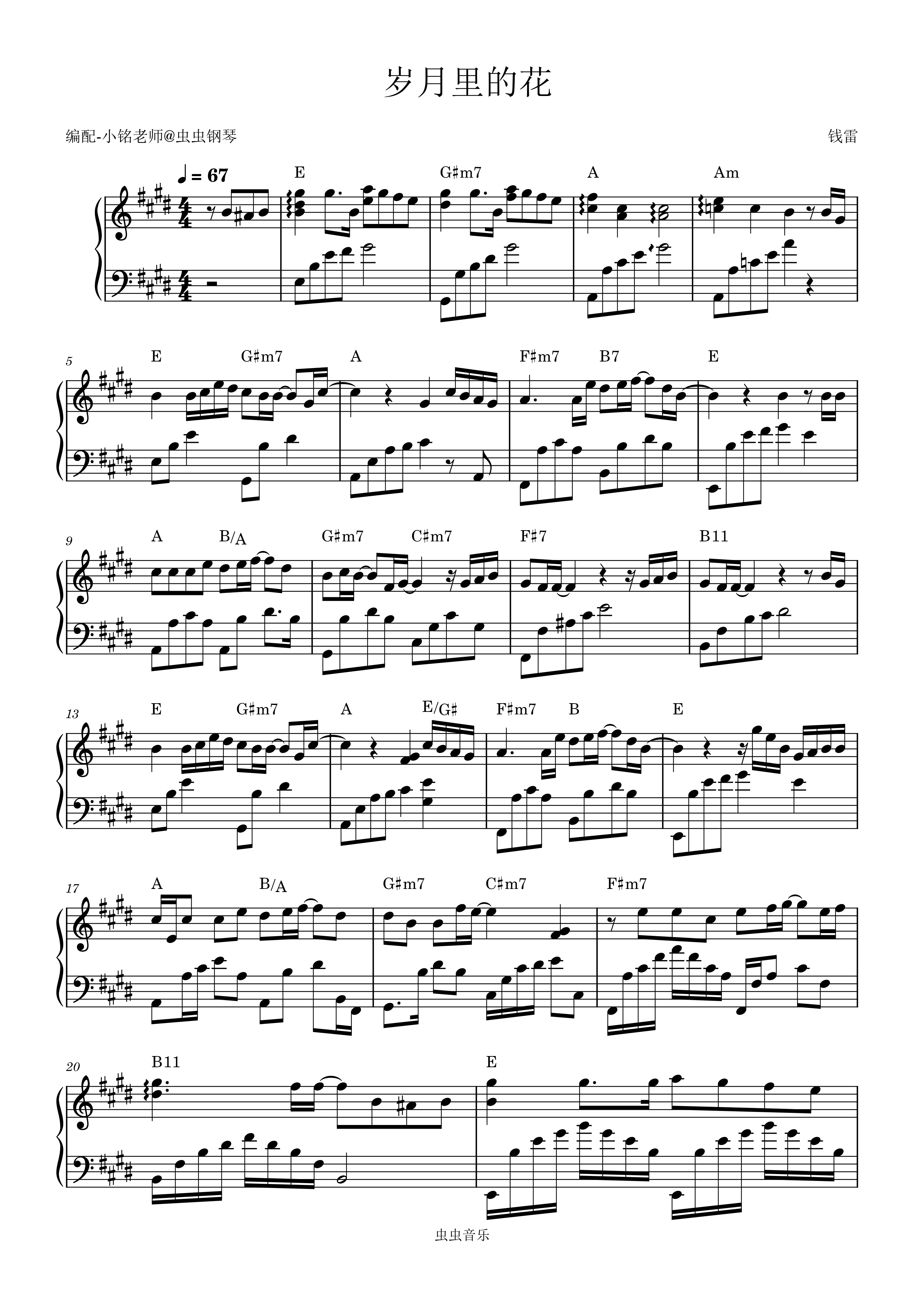 • 光辉岁月钢琴简谱 E调 数字双手 黄家驹