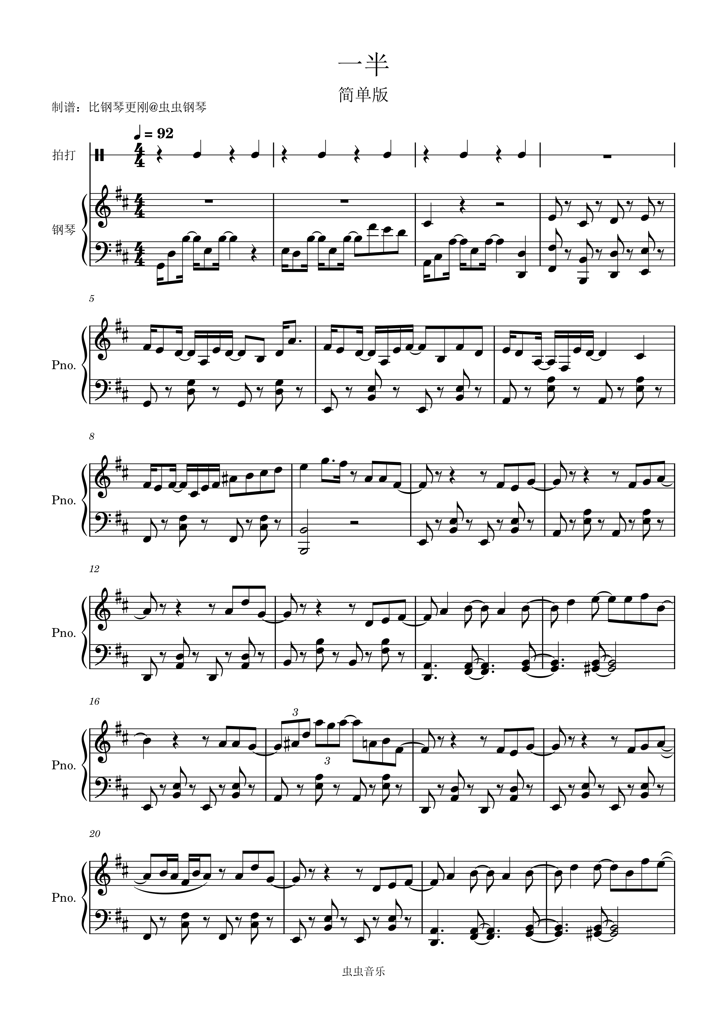 • 一半一半钢琴简谱 c调 数字双手 鸟爷