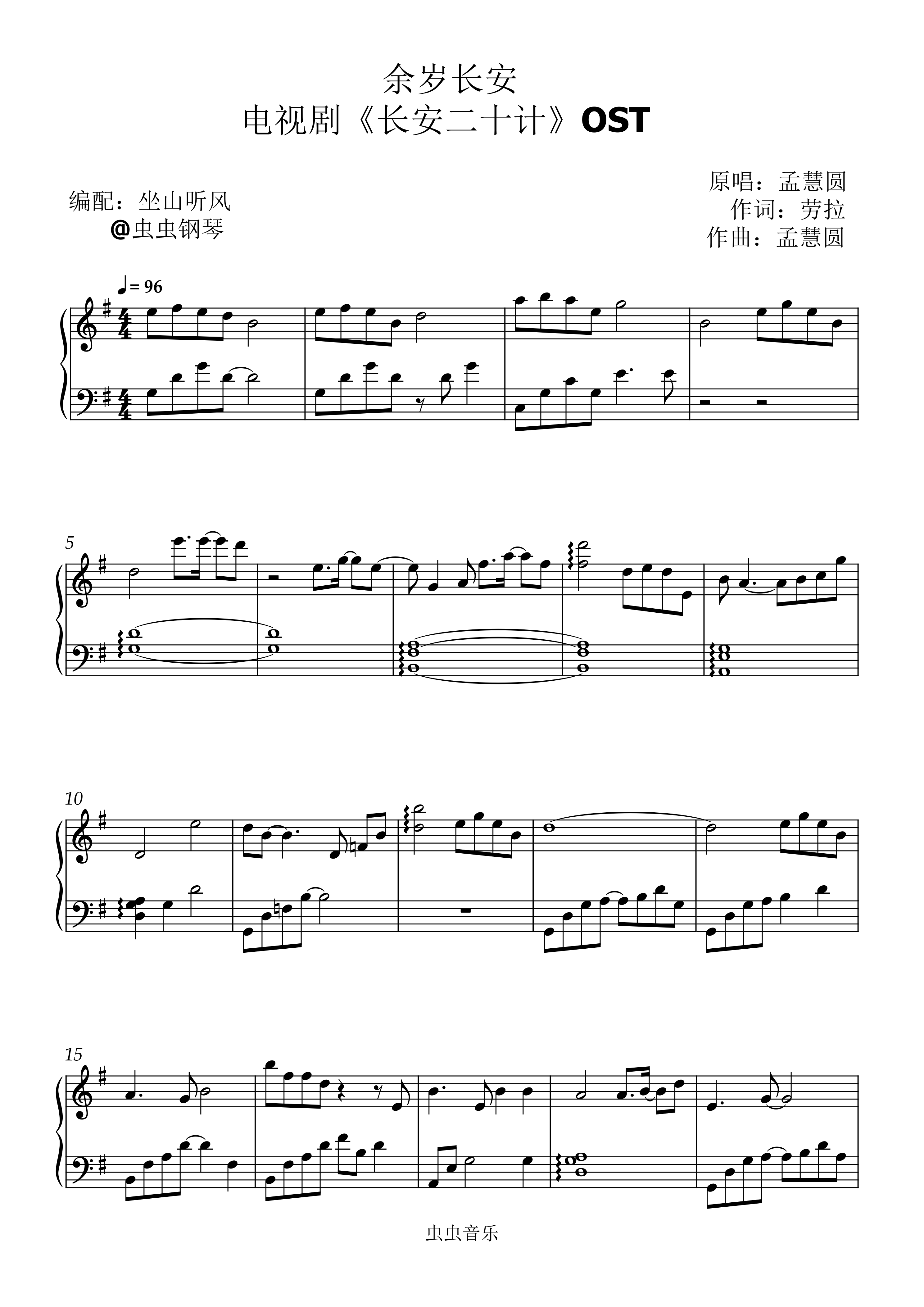 钢琴谱:余岁长安——电视剧《长安二十计》OST【唯美版】