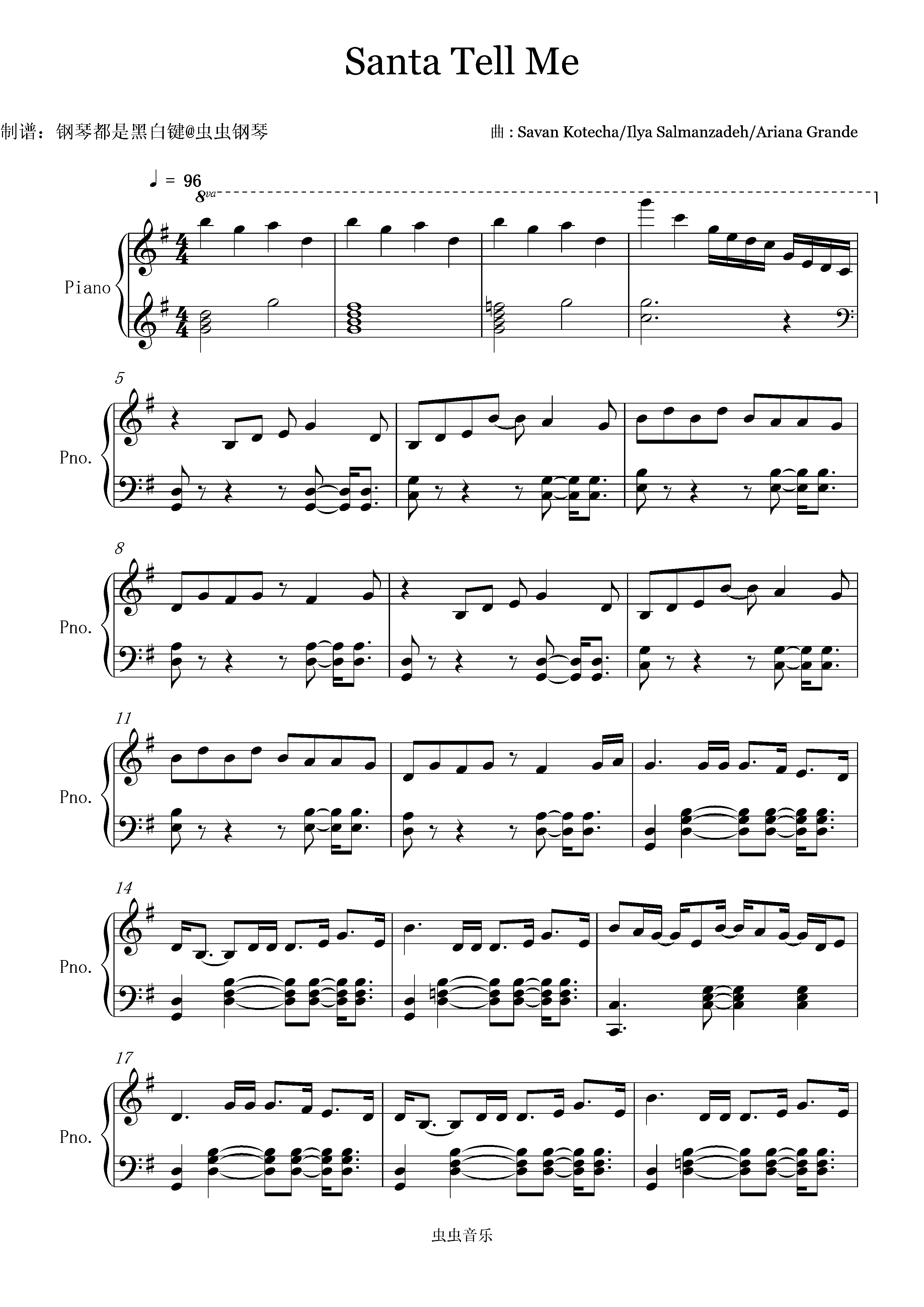 Santa Tell Me钢琴简谱 数字双手 Savan Kotecha/Ilya Salmanzadeh/Ariana Grande