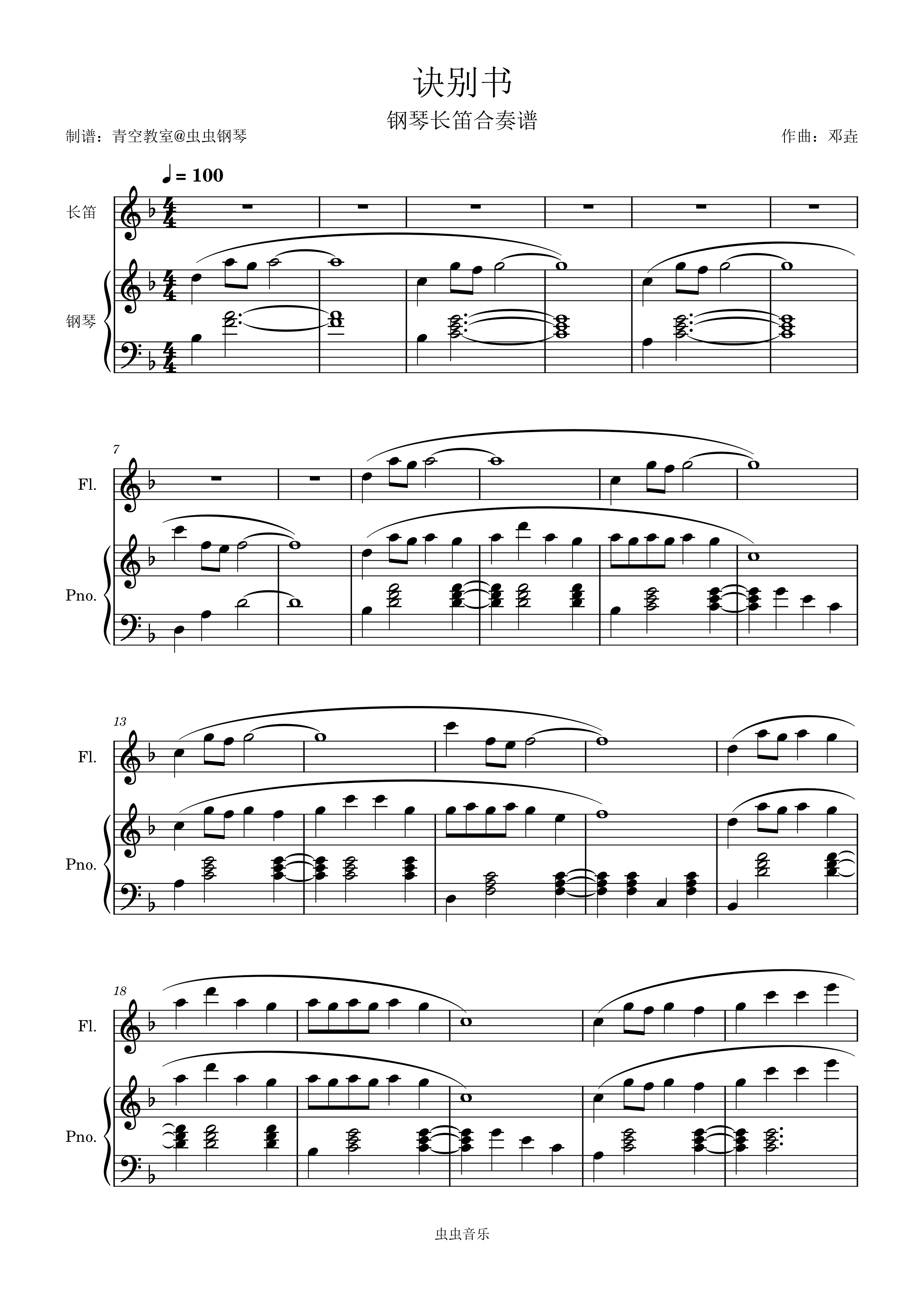 《诀别书》钢琴长笛合奏谱。个人扒谱+编配,无商业用途,喜欢这首曲子的朋友可以自取,欢迎交流演奏心得