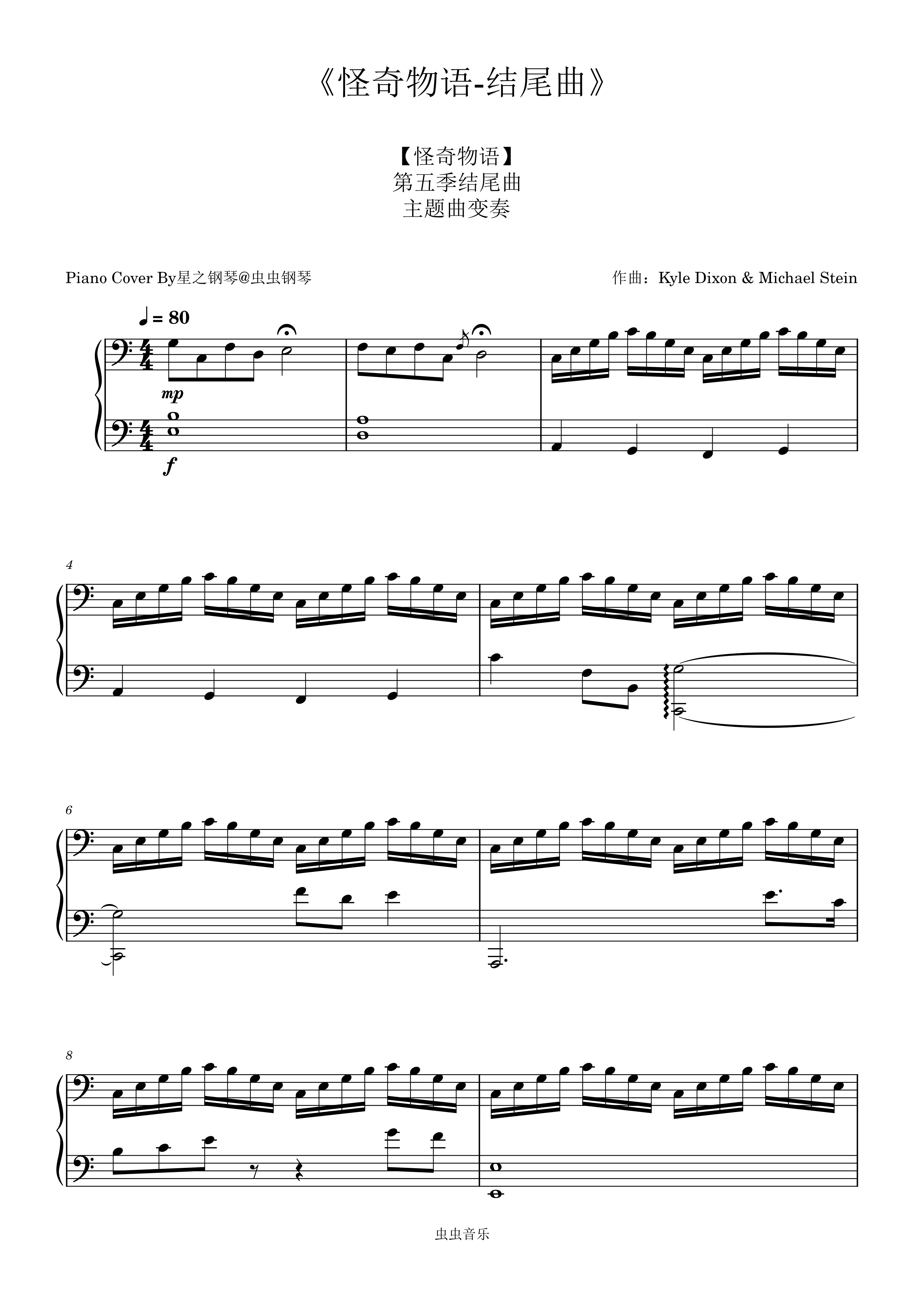 钢琴谱:【怪奇物语】第五季《怪奇物语-结尾曲》钢琴独奏版~星之钢琴~