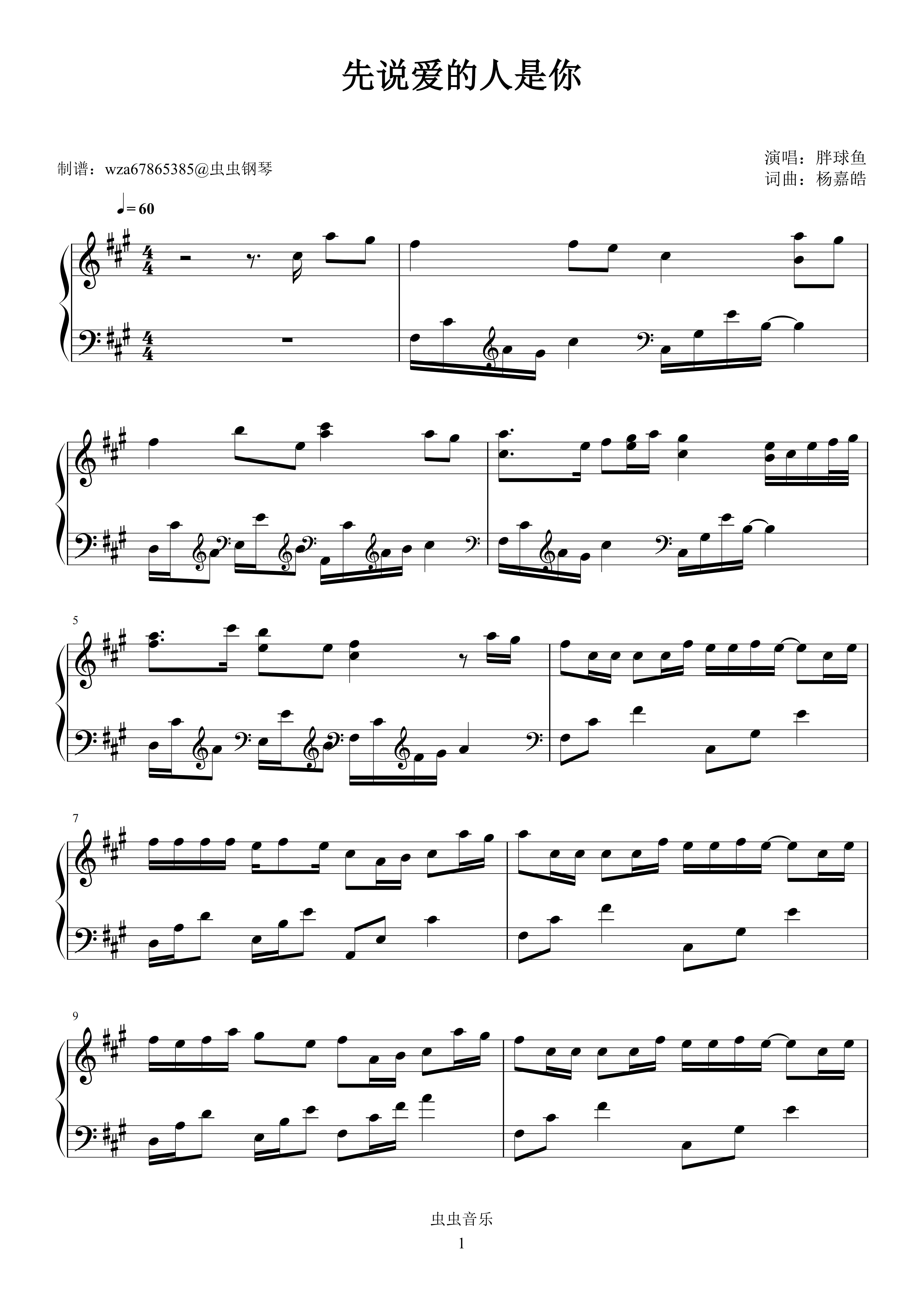 先说爱的人是你钢琴简谱 数字双手 杨嘉皓