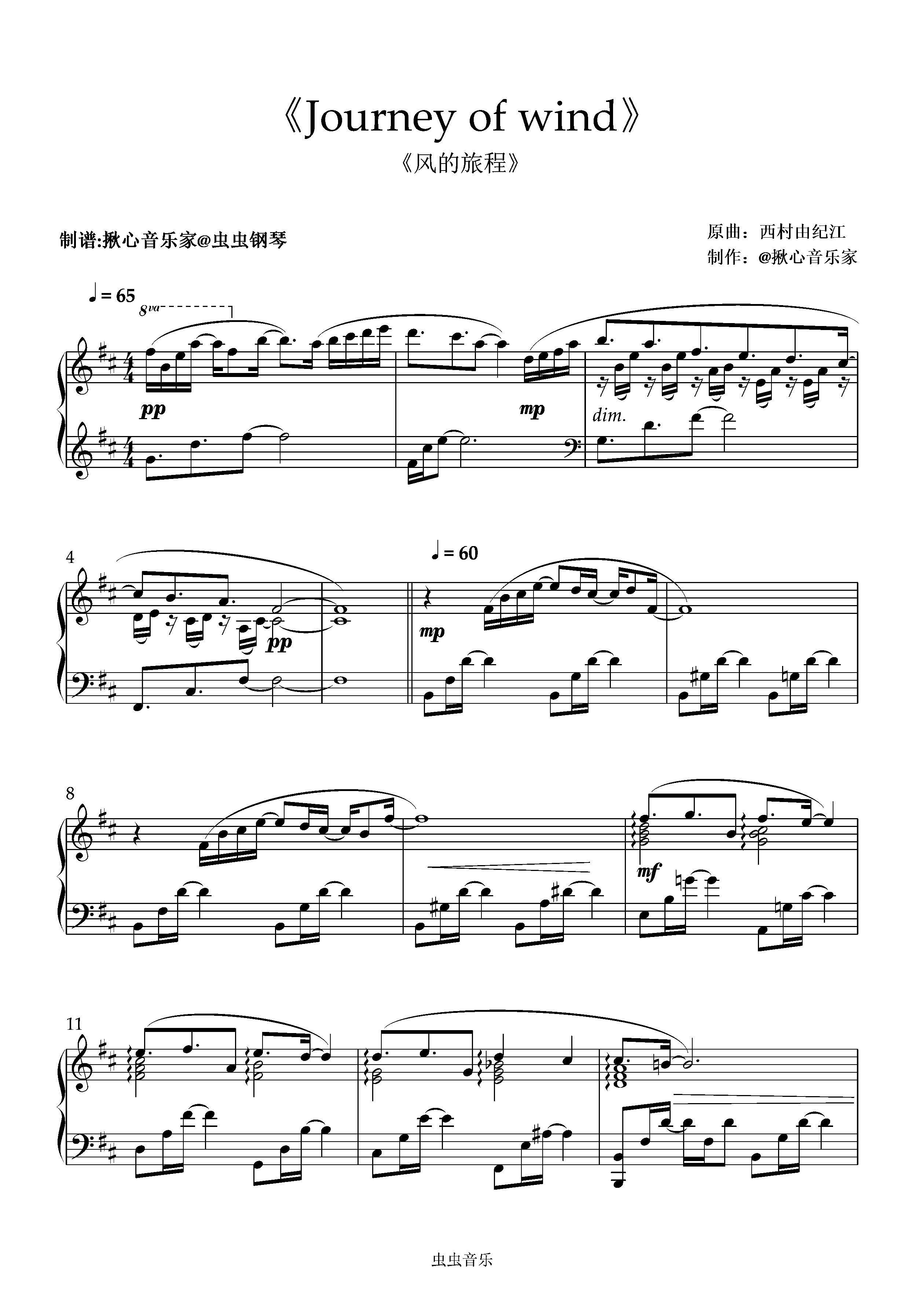 钢琴谱:《journey of wind》原版b小调