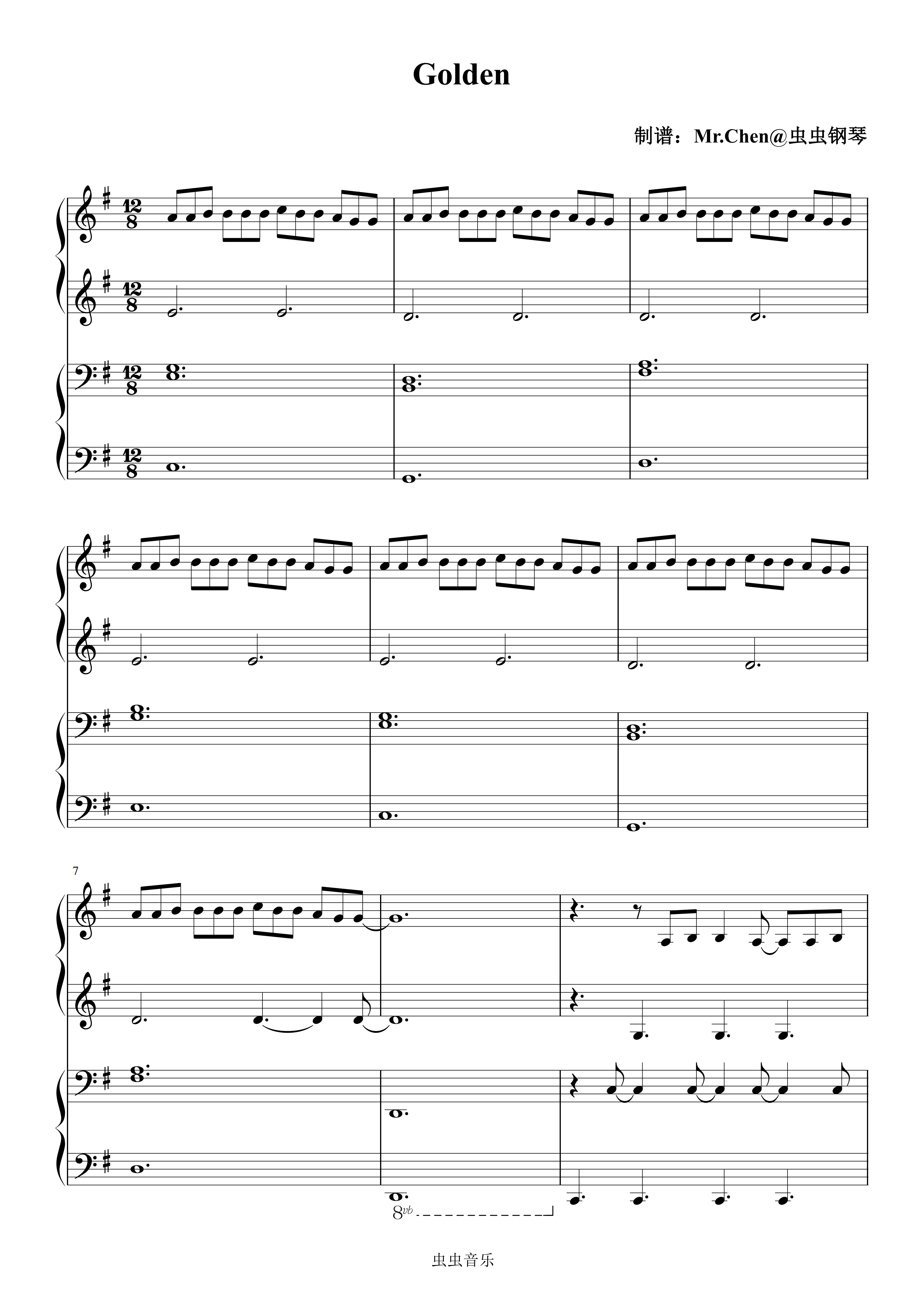 Golden钢琴简谱 数字双手 EJAE/Mark Sonnenblick