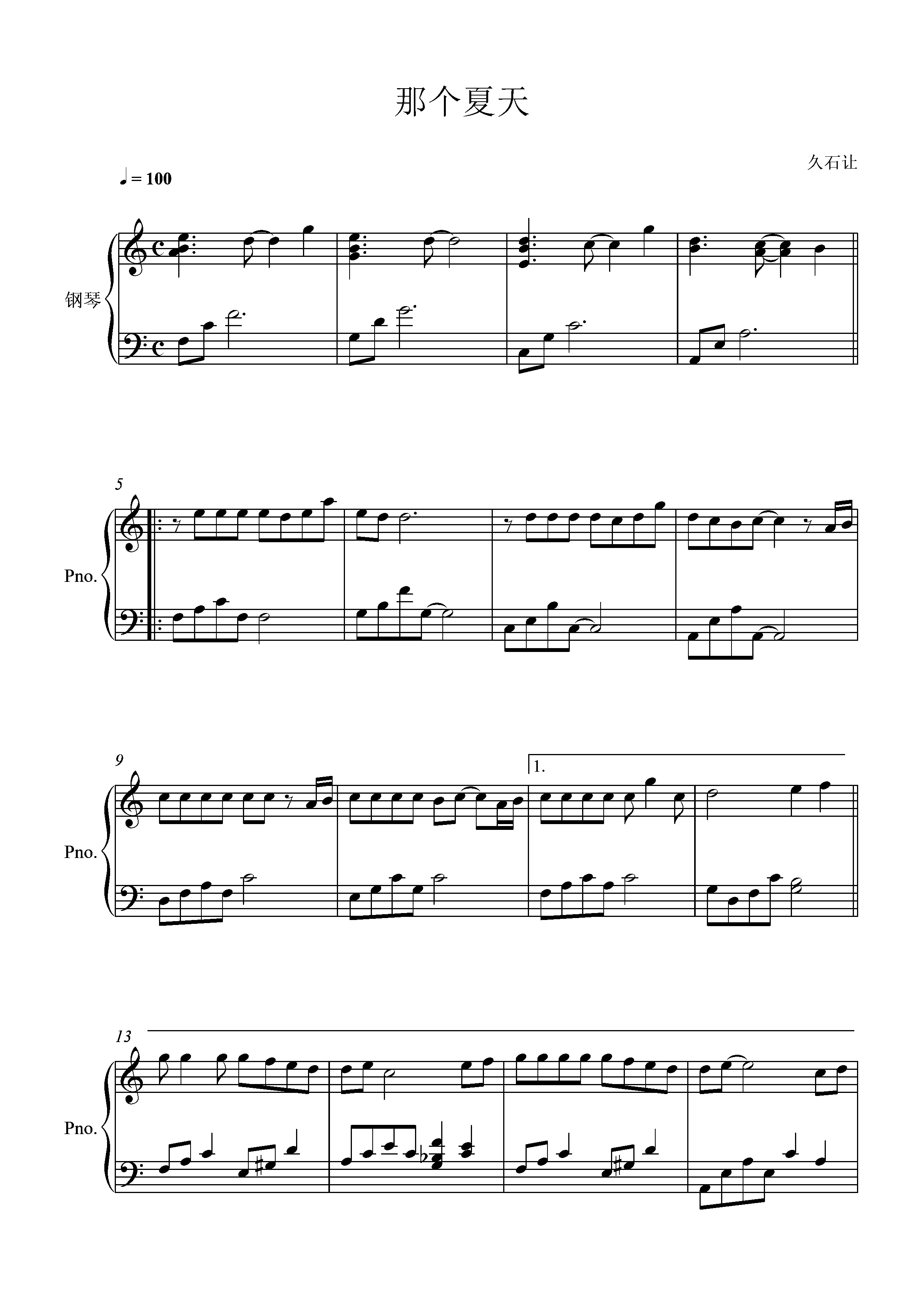 钢琴谱:那个夏天《千与千寻》主题曲