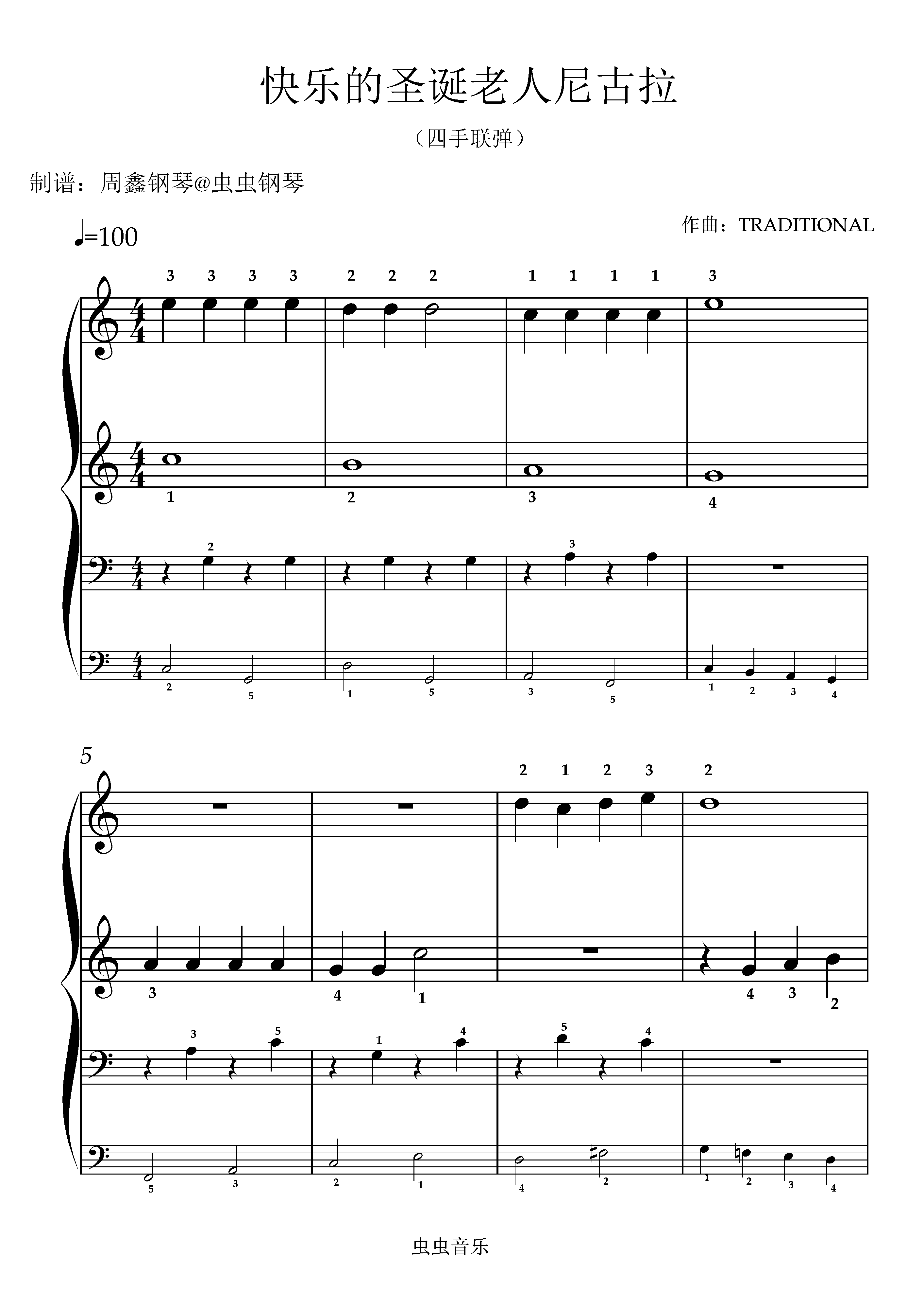 钢琴谱:《快乐的圣诞老人尼古拉》四手联弹 C调 简单版