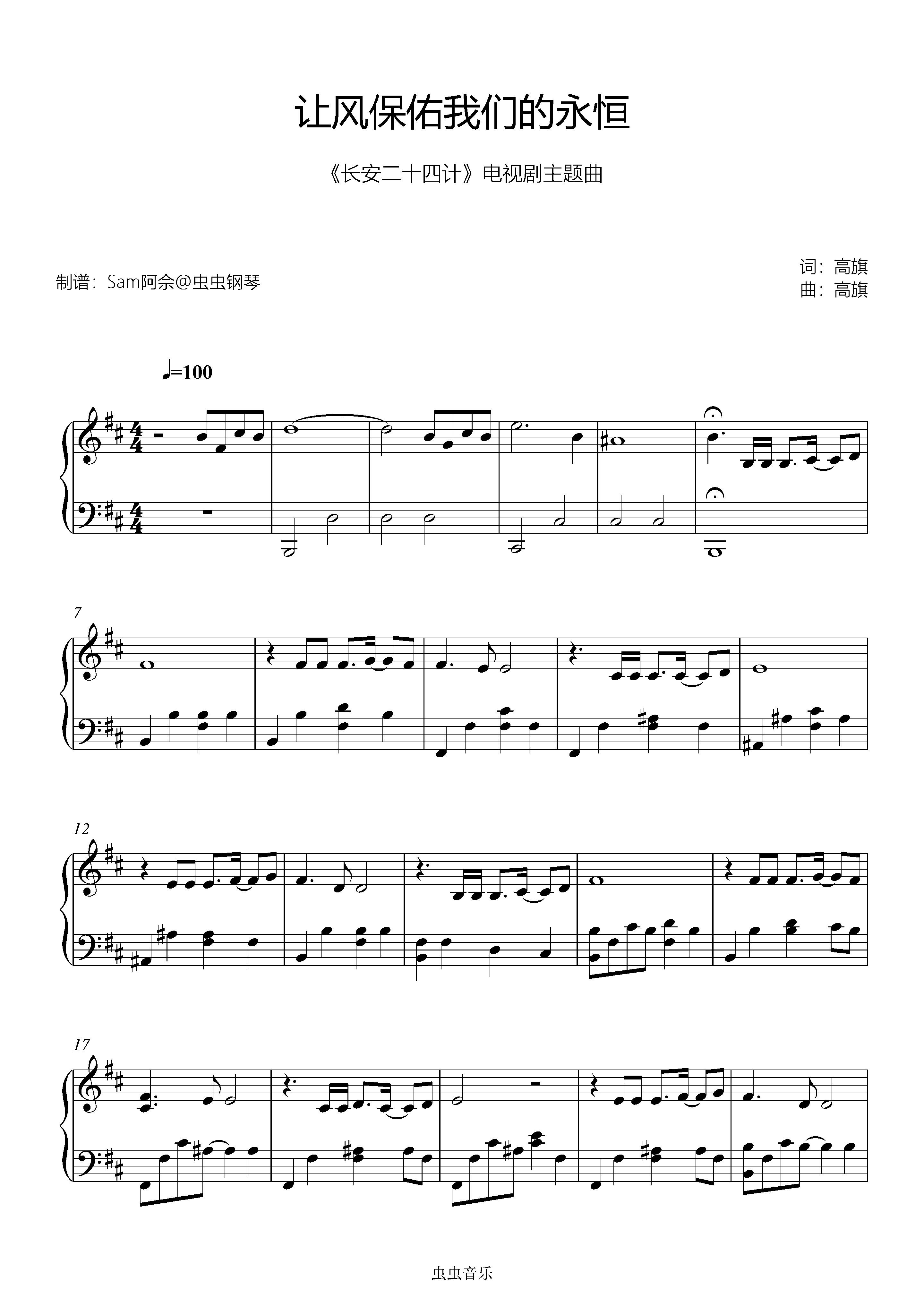 让风保佑我们的永恒钢琴简谱 数字双手 高旗