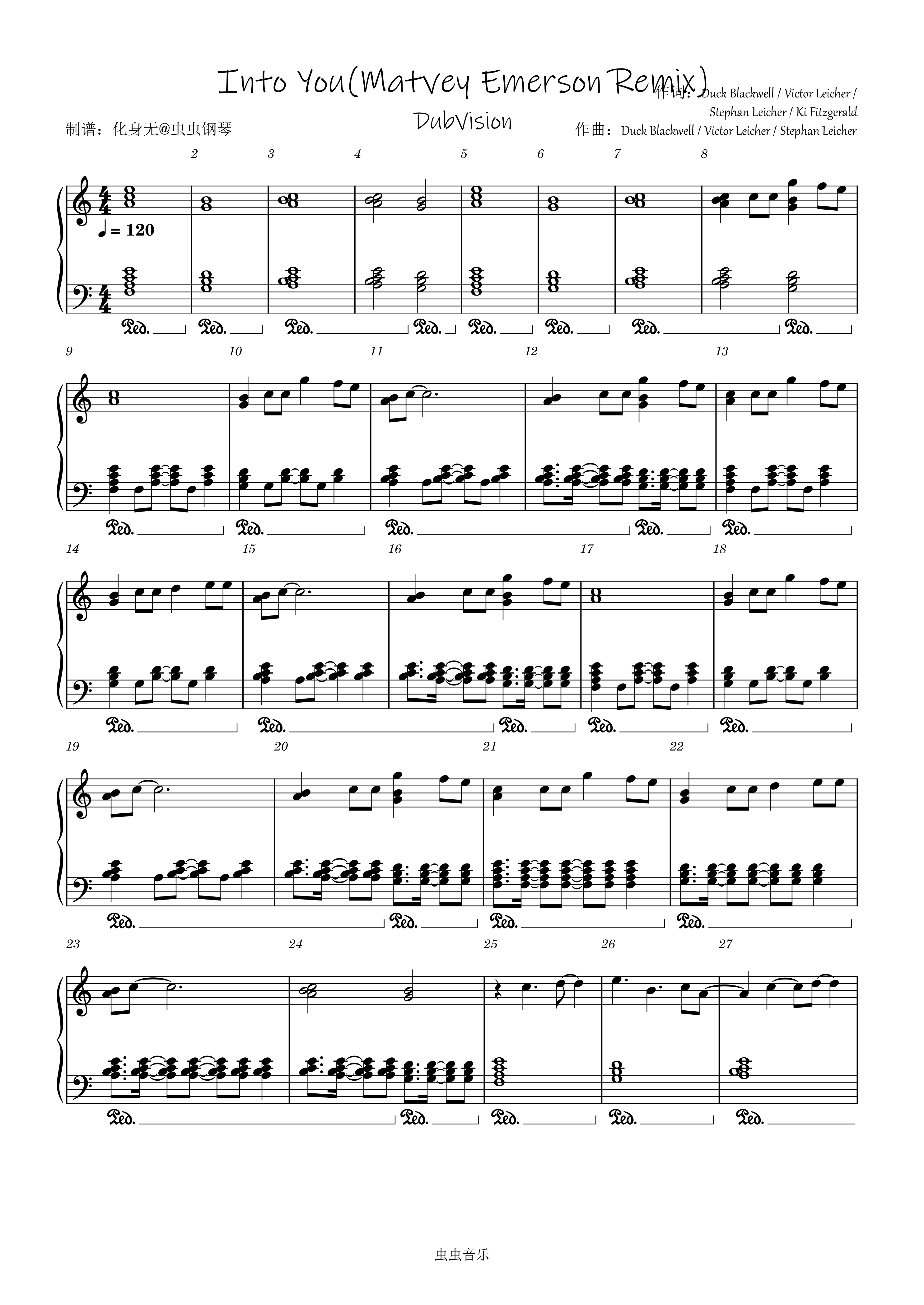 钢琴谱:Into You (Matvey Emerson Remix) C调独奏版 化身无编配