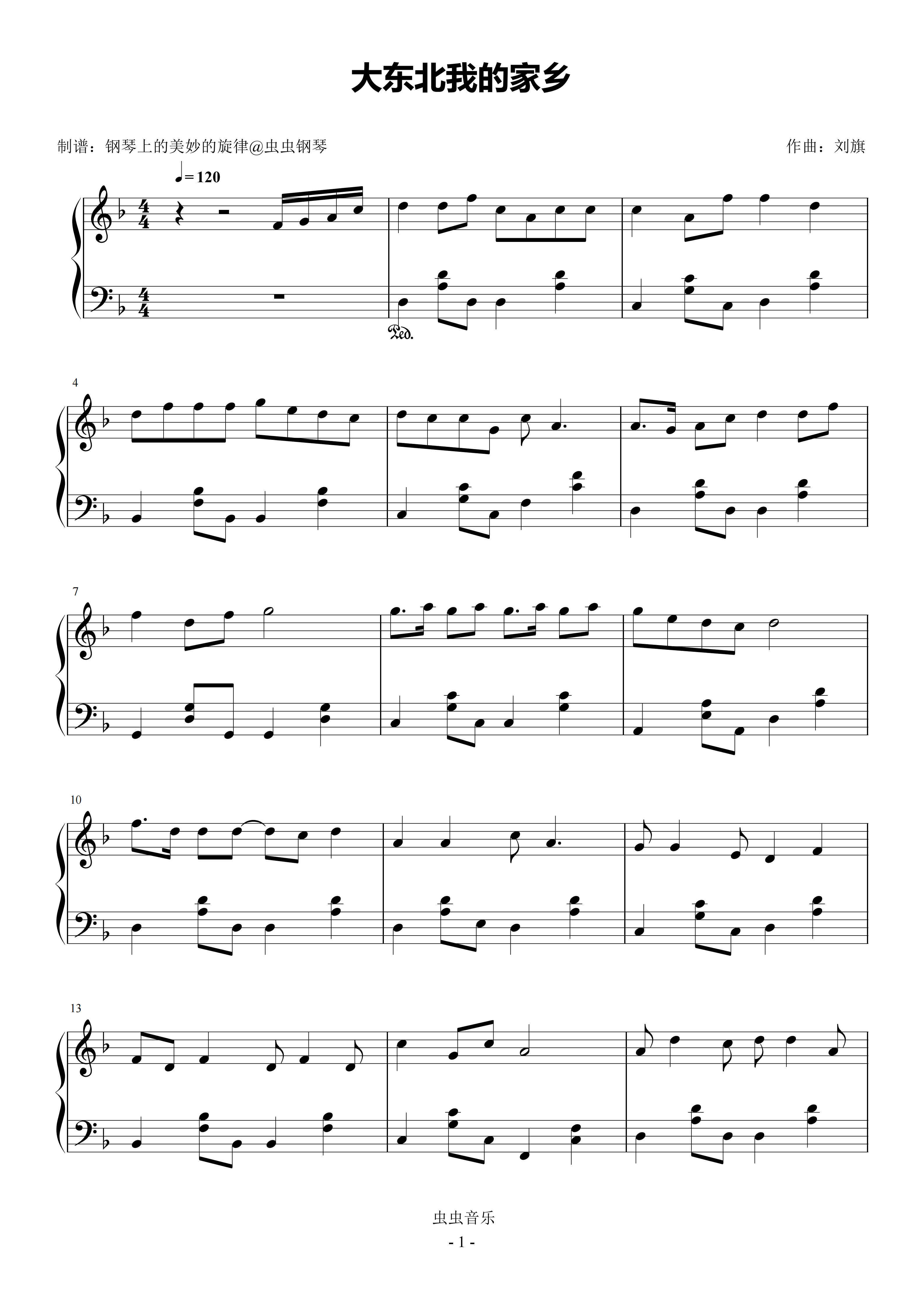 • 一路向北钢琴简谱 F调 数字双手 方文山