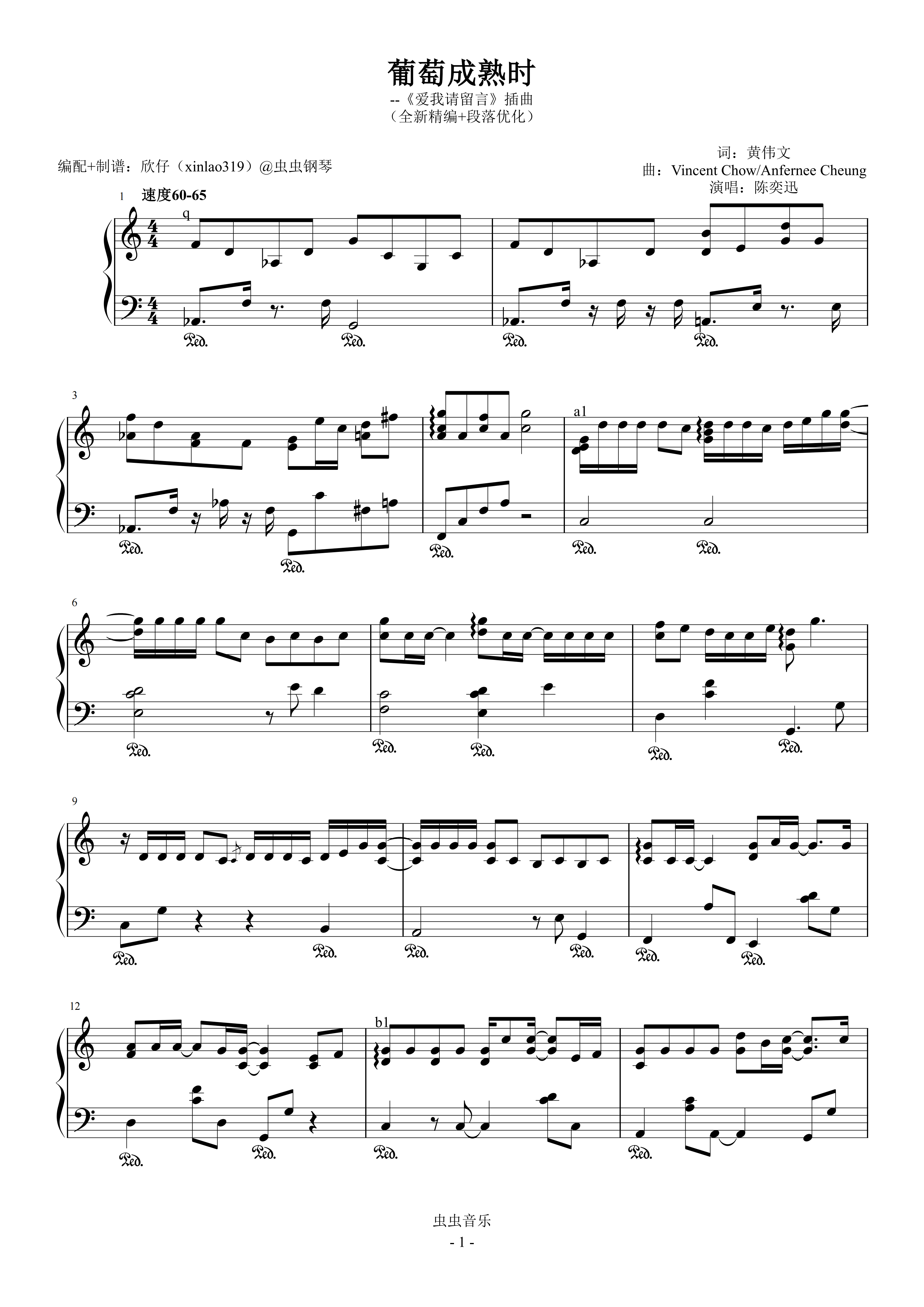 钢琴谱:葡萄成熟时(C、陈奕迅《爱我请留言》插曲、段落优化)