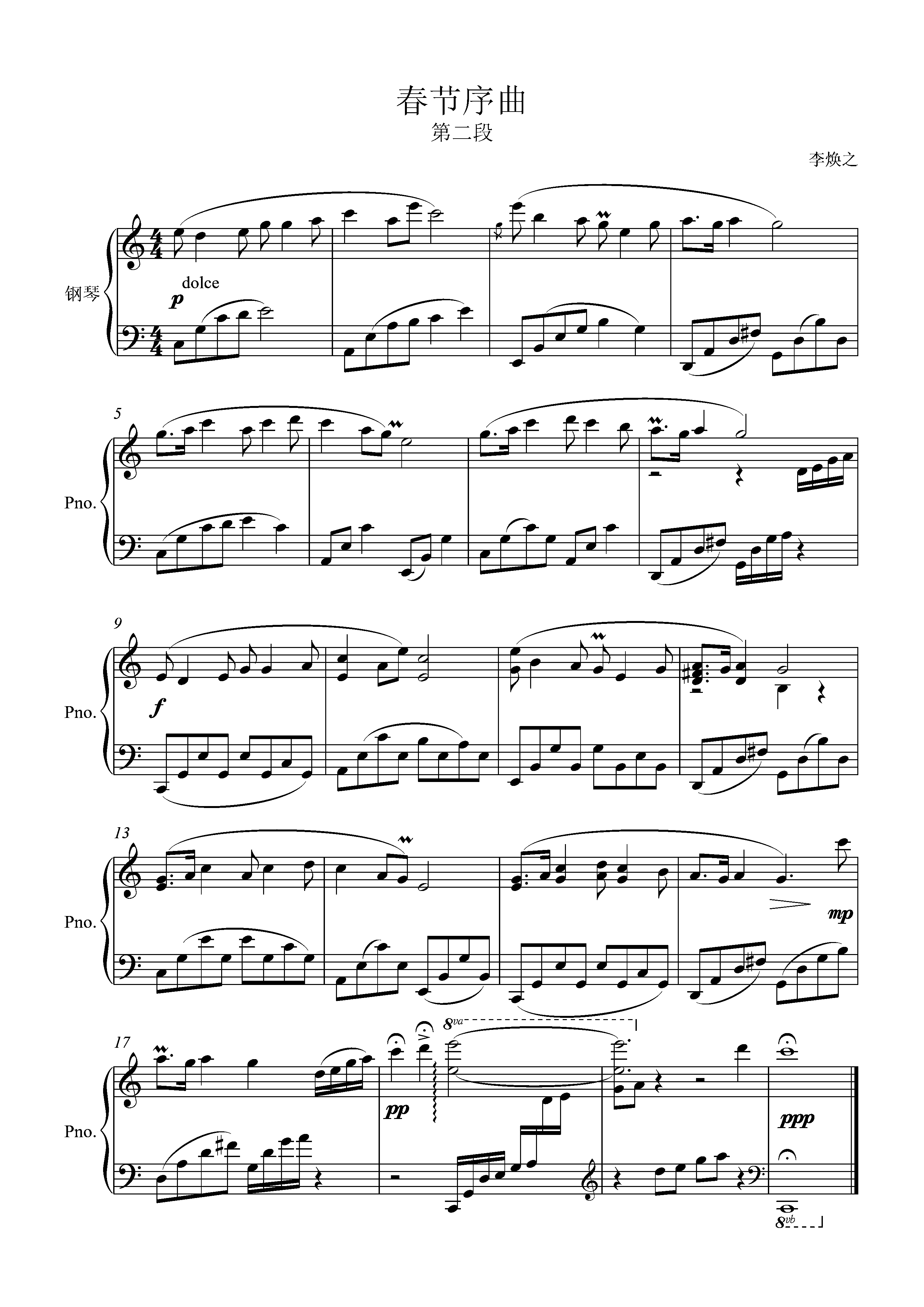 • 春节序曲-第一声部钢琴简谱 C调 数字双手