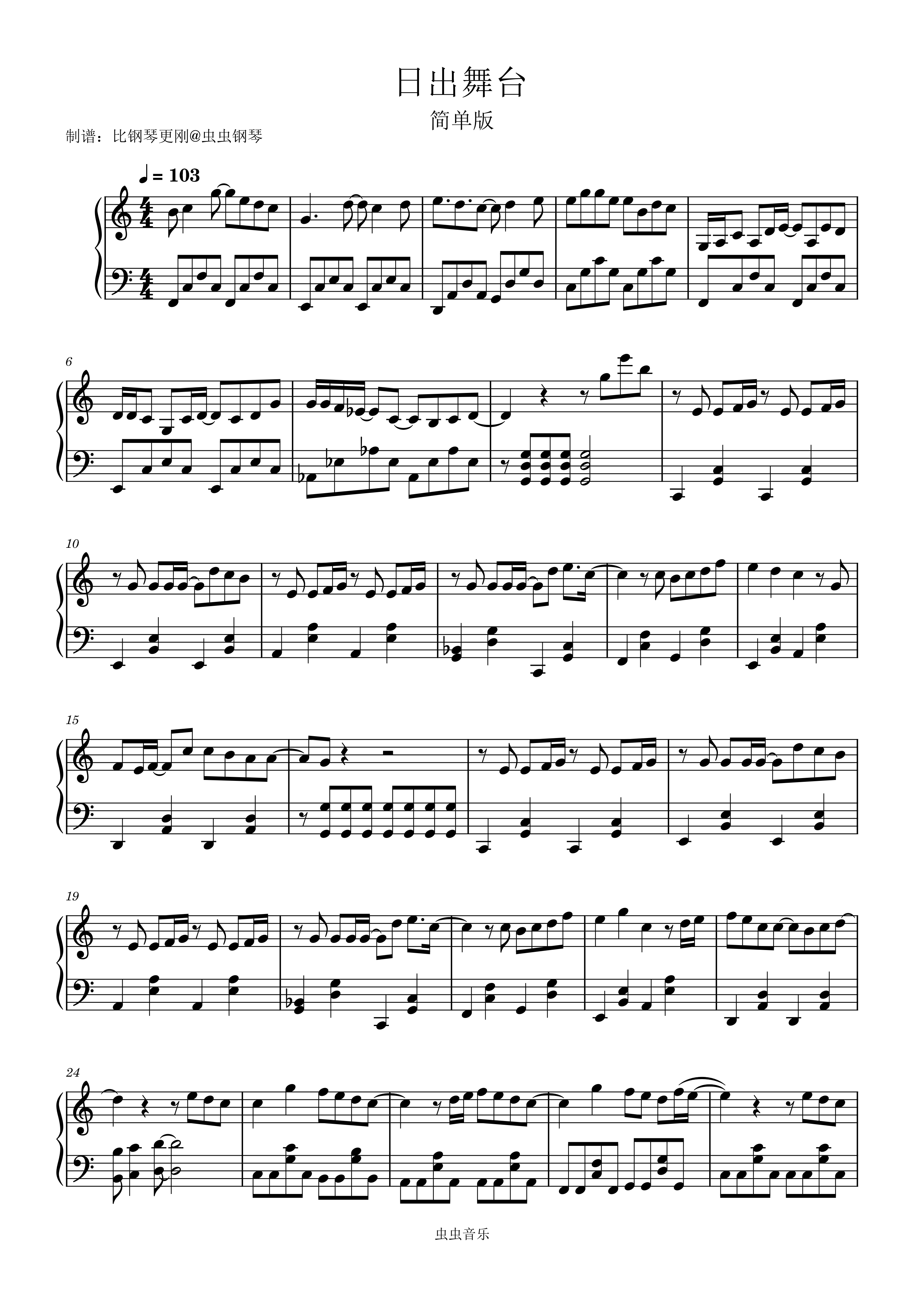 • 我的舞台钢琴简谱 A调 数字双手 曹峻