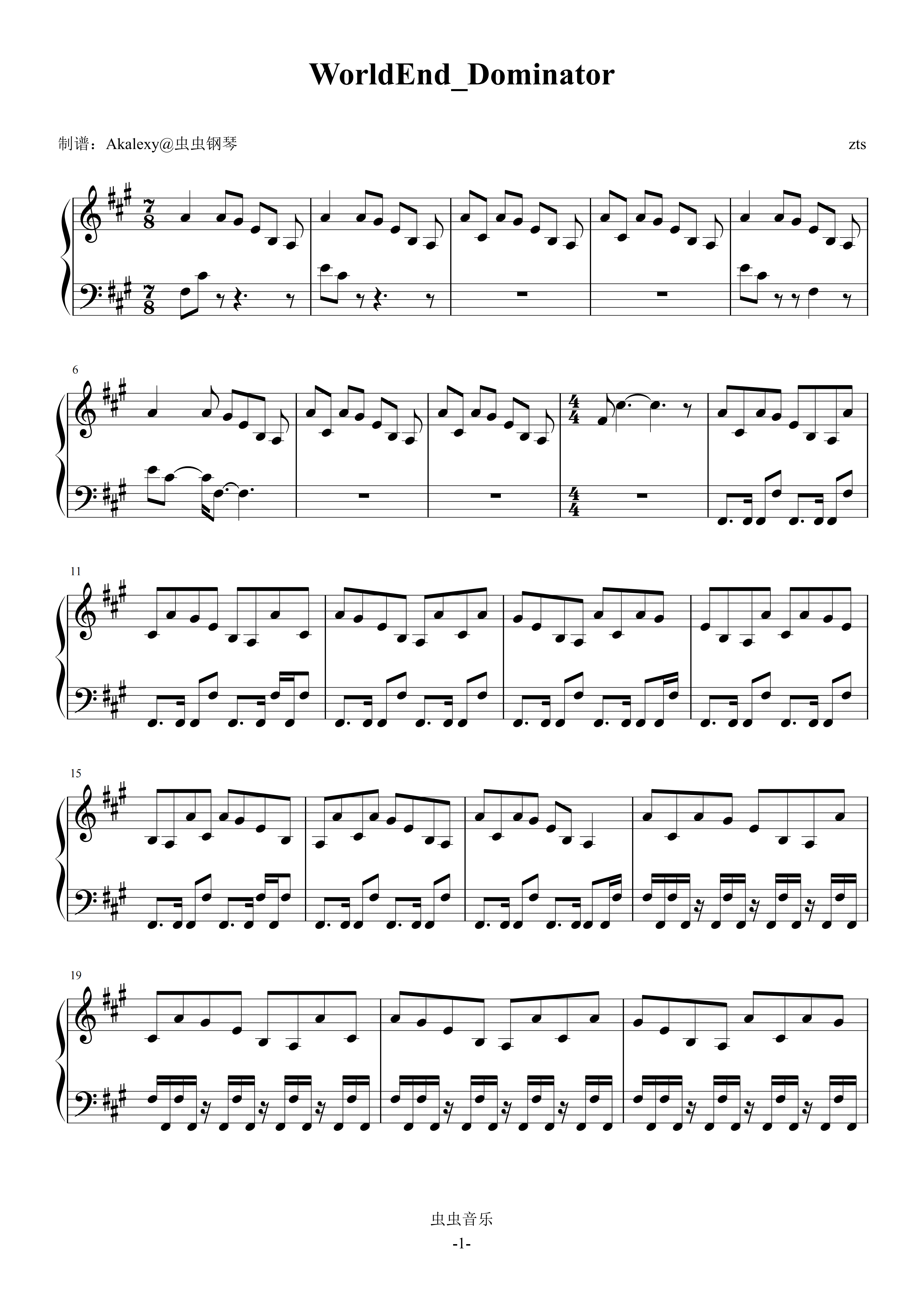 钢琴谱:【海猫鸣泣之时】WorldEnd_Dominator