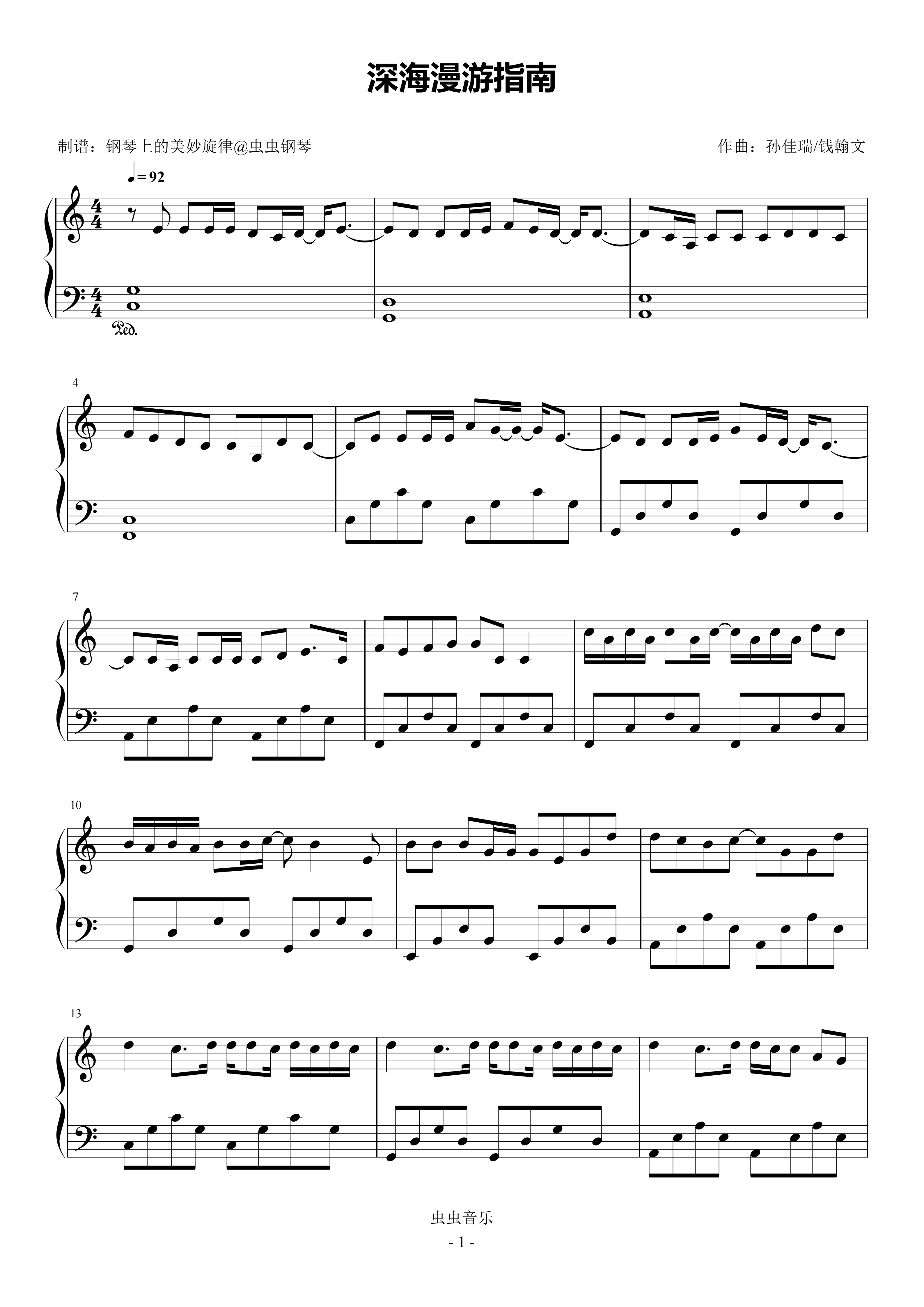 • 再见深海钢琴简谱 C调 数字双手 唐汉霄/王竞