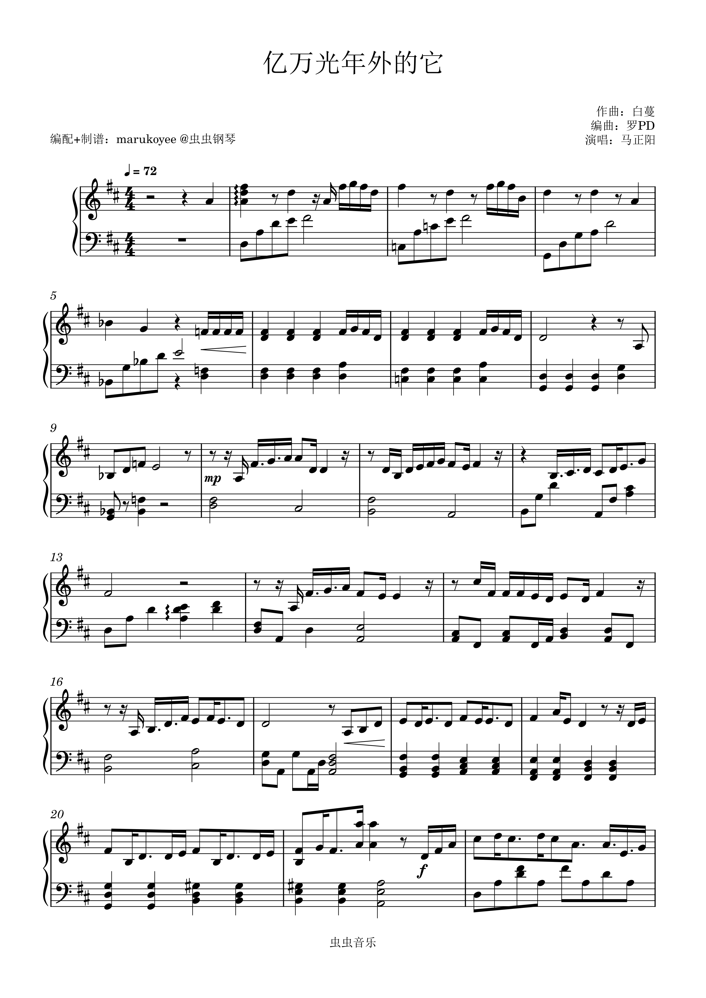 钢琴谱:【马正阳】亿万光年外的它(原调完整版-D大调)