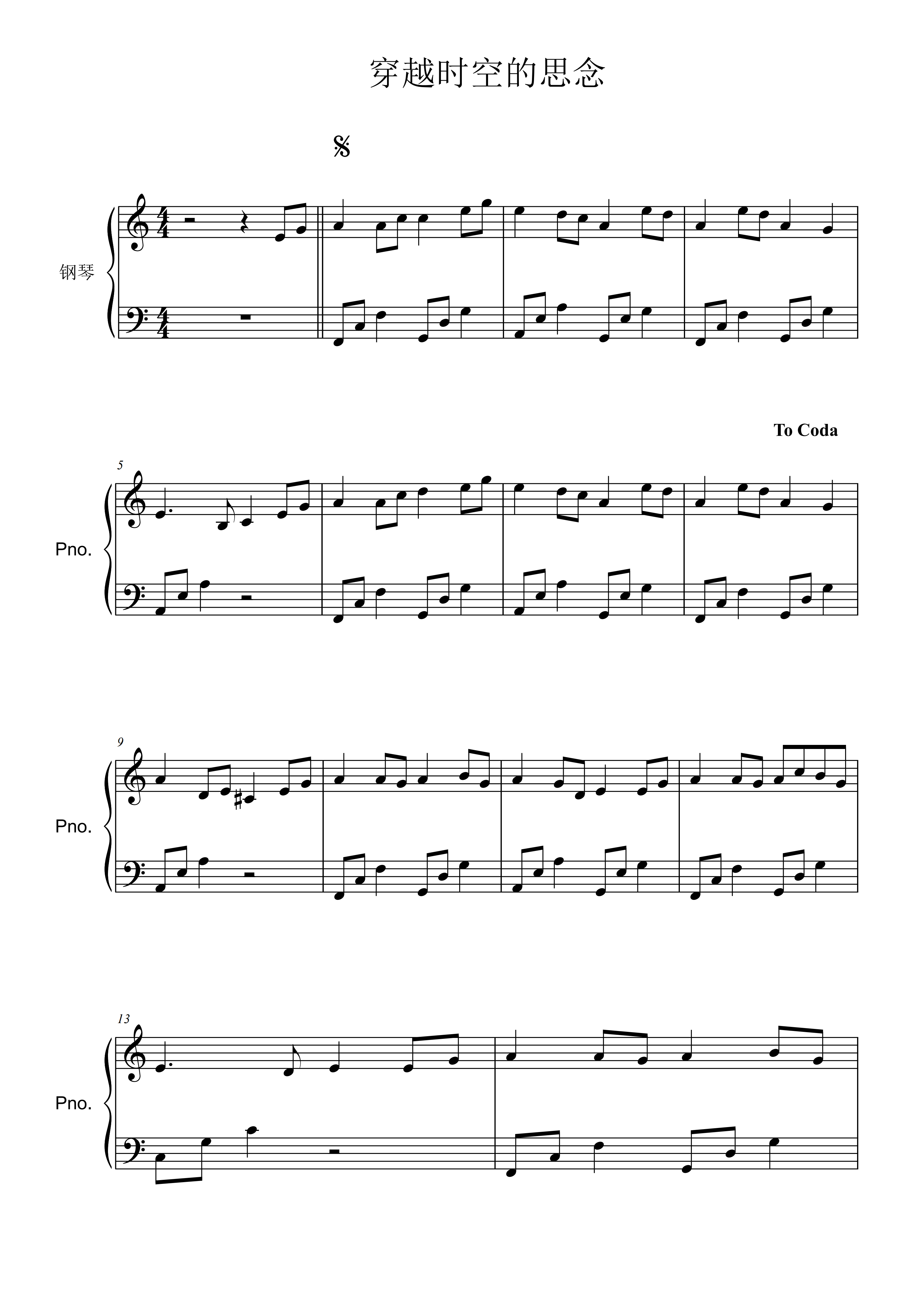 • 時代を越える想い钢琴简谱 C调 数字双手