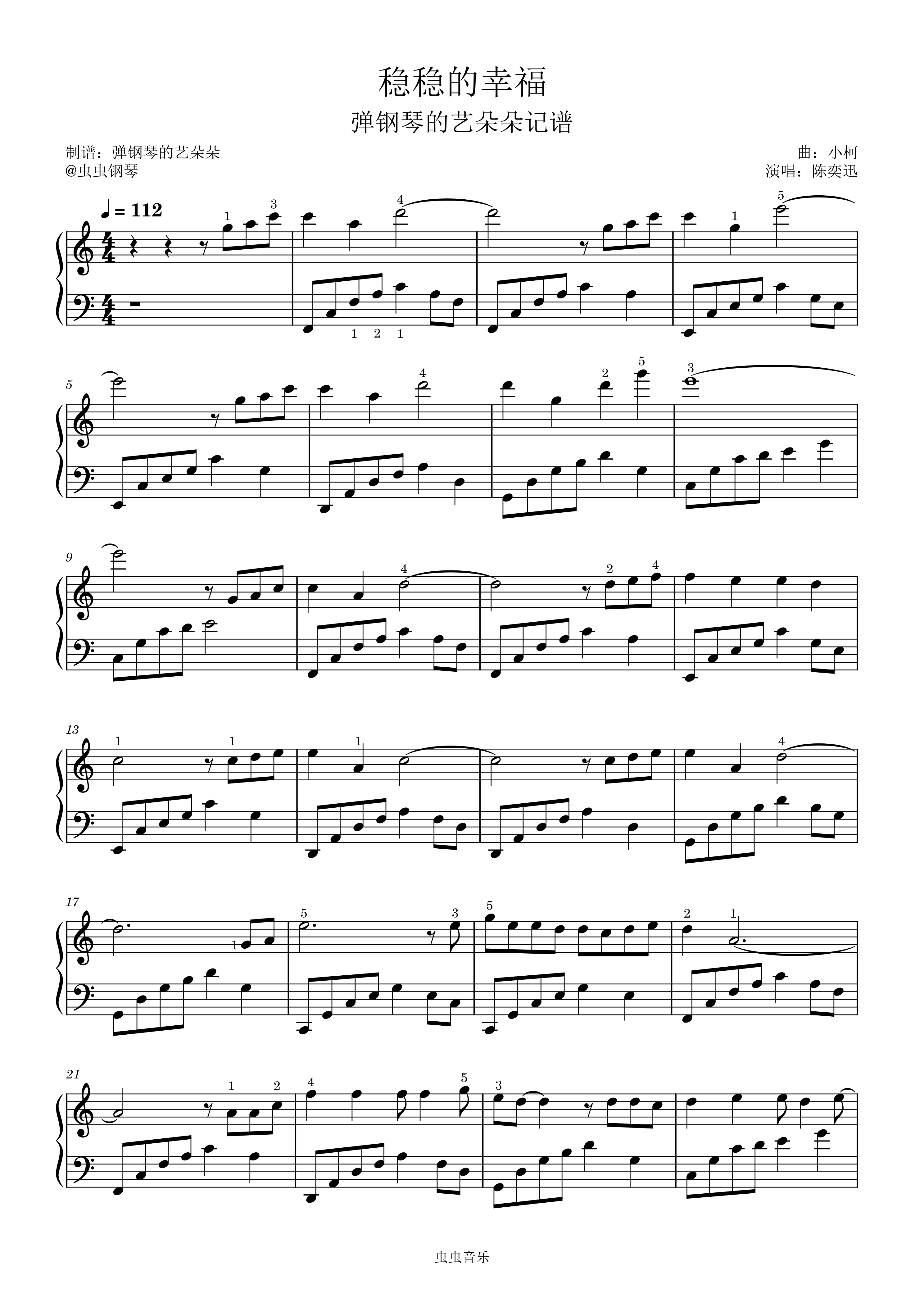 • 简单的幸福钢琴简谱 F调 数字双手 许兴刚