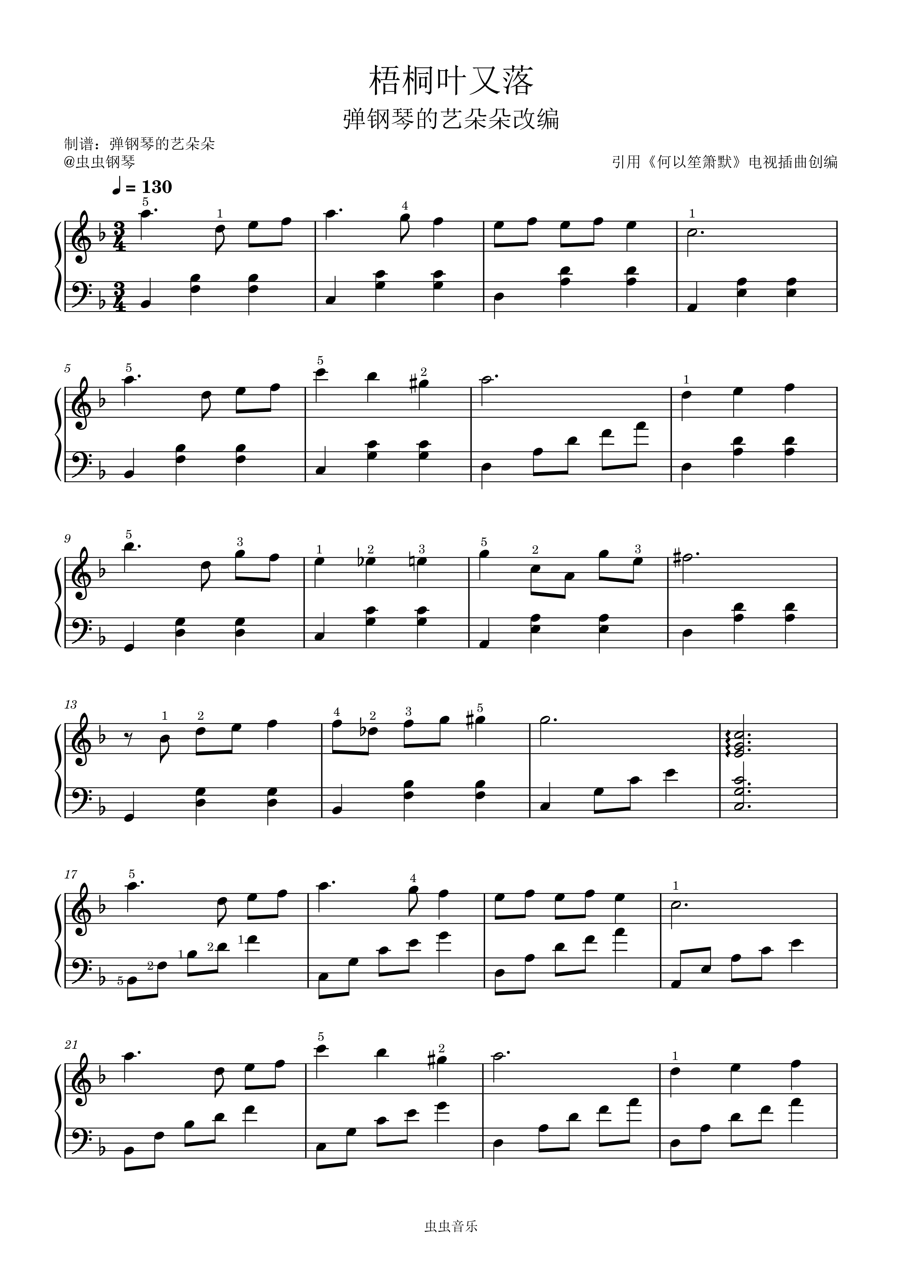 钢琴谱:梧桐叶又落(精编指法版)