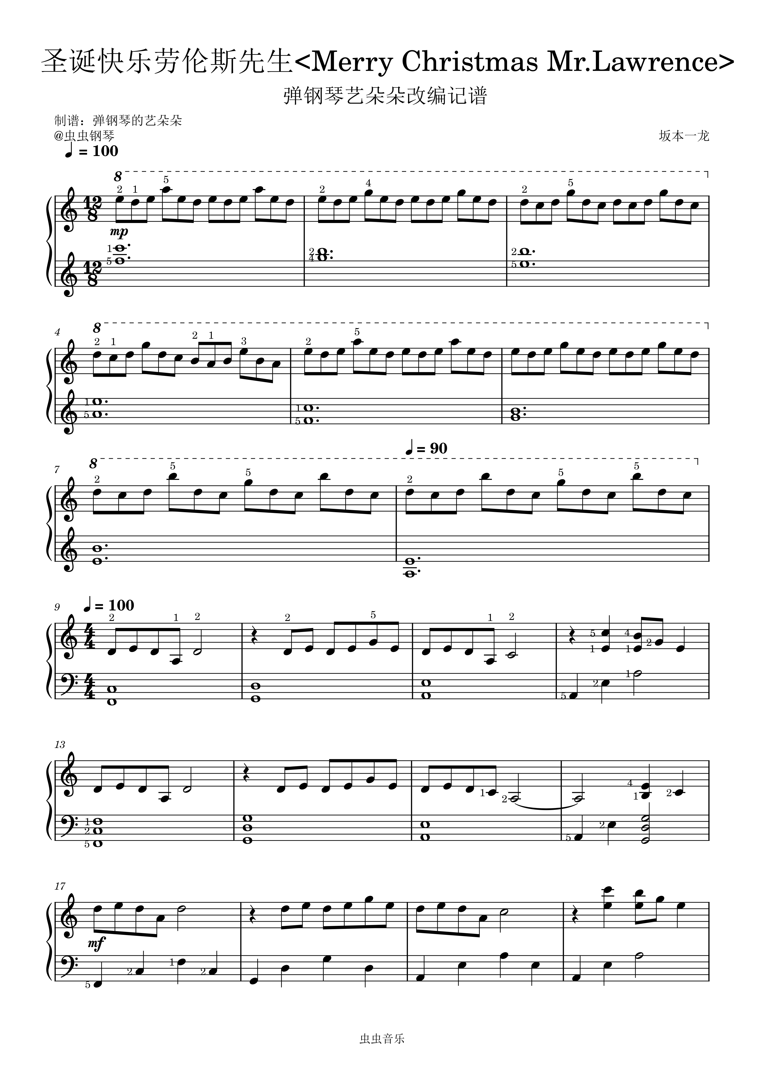 歌曲自行改编,并配有指法,让初学初学也能弹会的圣诞快乐劳伦斯先生