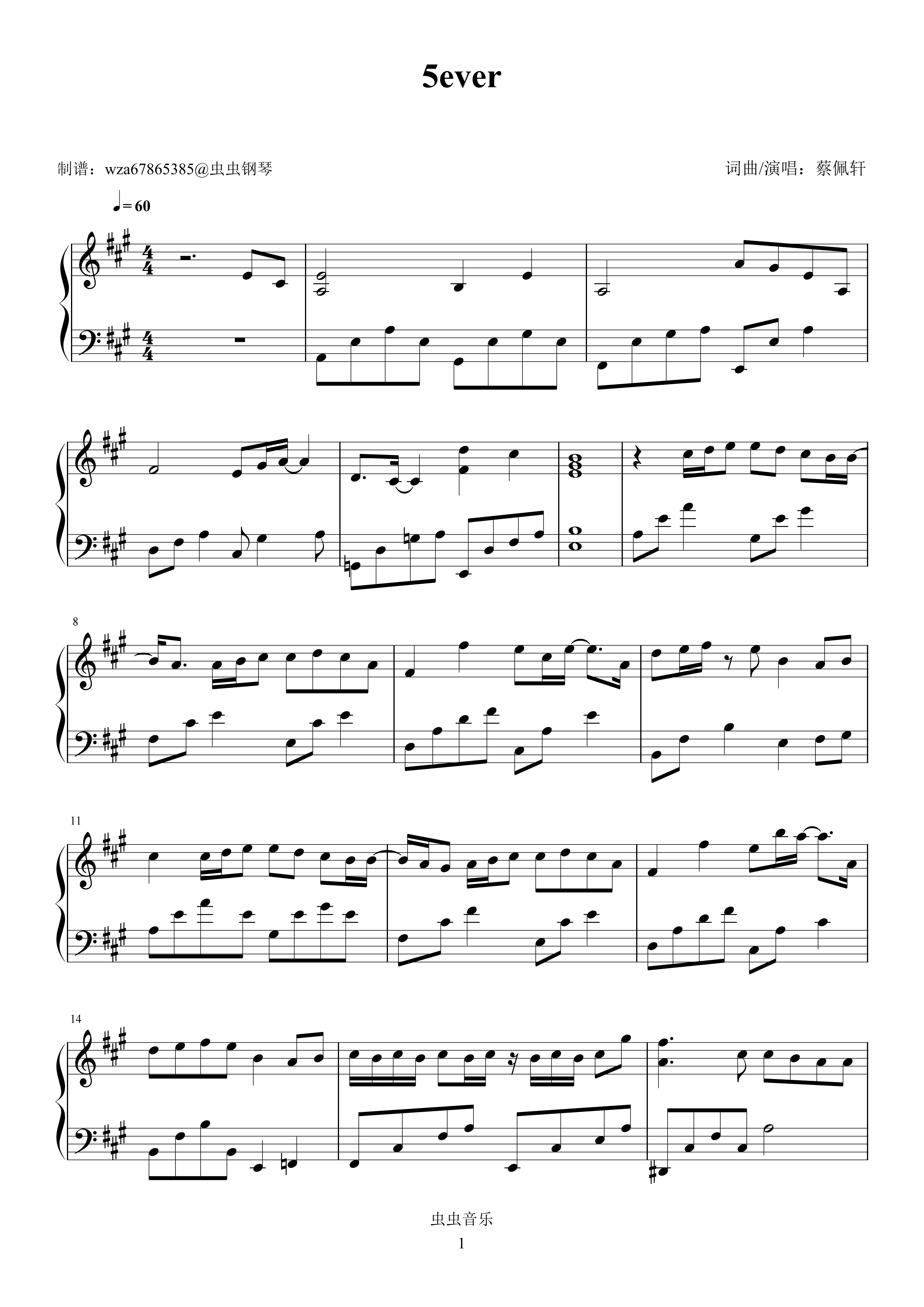 • 夏野与暗恋钢琴简谱 C调 数字双手